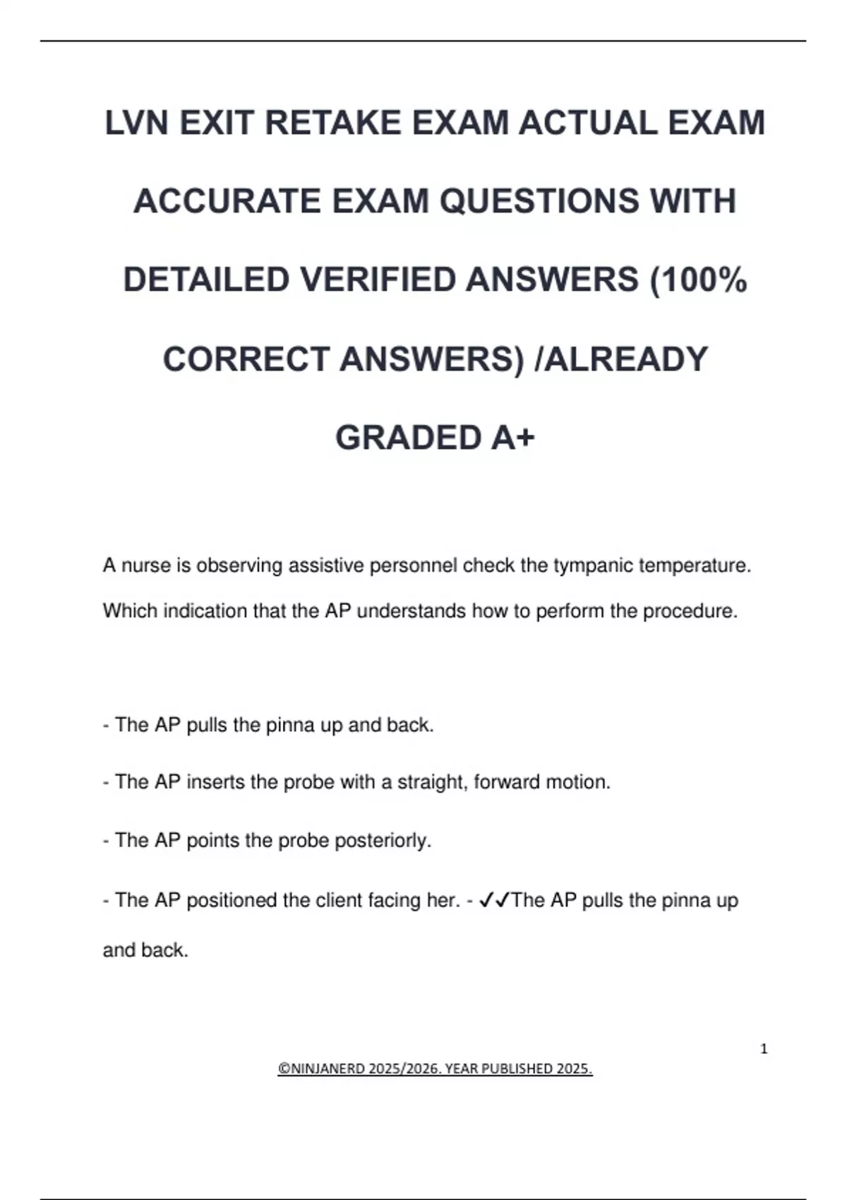 - The AP positioned the client facing her. - ✔✔The AP pulls the pinna up