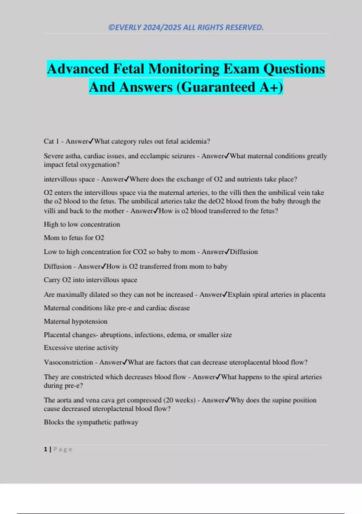 Cat 1 - Answer✔What category rules out fetal acidemia?