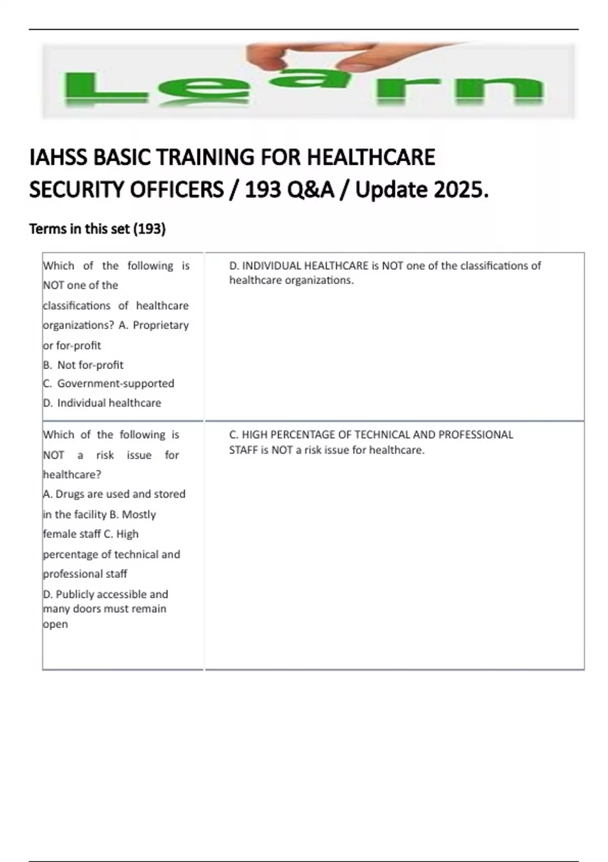IAHSS BASIC TRAINING FOR HEALTHCARE SECURITY OFFICERS / 193 Q&A / Update 2025.