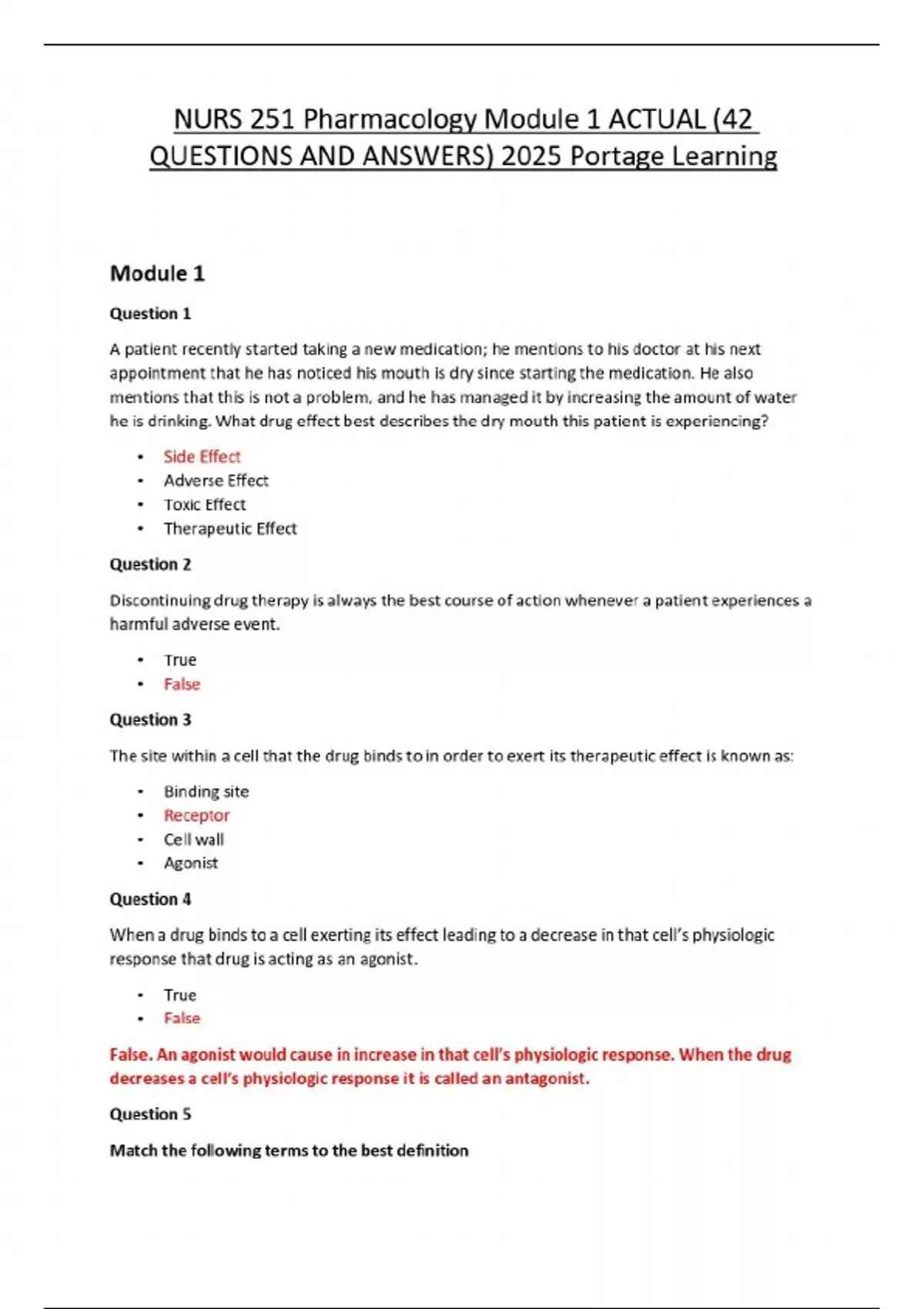 NURS 251 Pharmacology Module 1 ACTUAL (42 QUESTIONS AND ANSWERS) 2025 Portage Learning