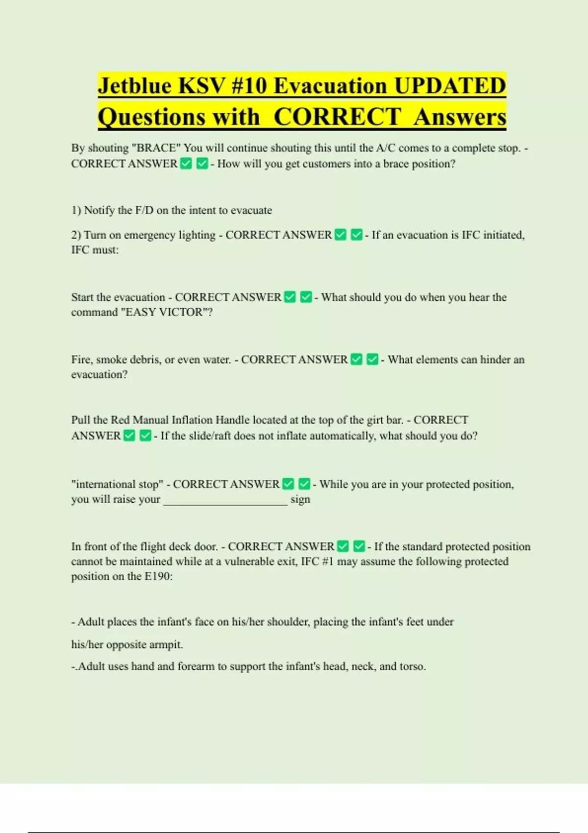 Jetblue KSV #10 Evacuation UPDATED Questions with CORRECT Answers