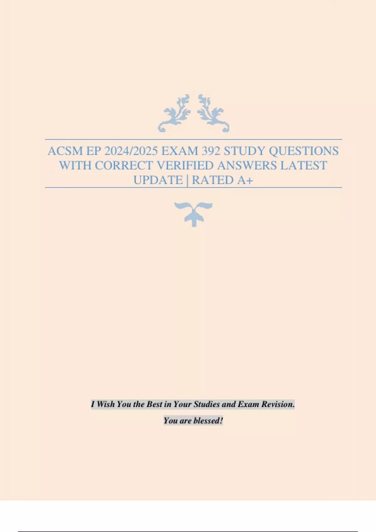 ACSM EP 2024/2025 EXAM 392 STUDY QUESTIONS WITH CORRECT VERIFIED ANSWERS LATEST UPDATE | RATED A+