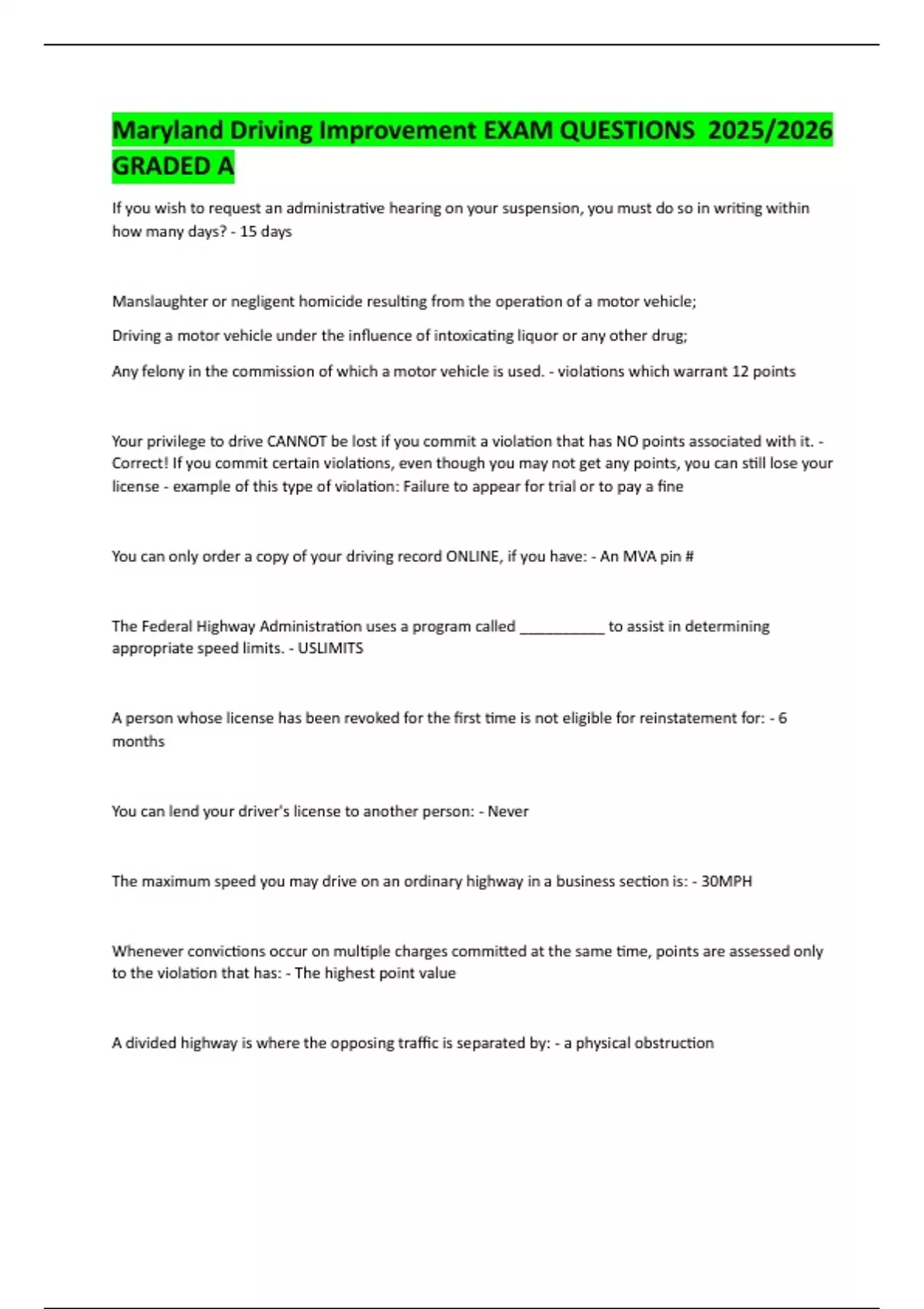 The Motor Vehicle Administration may suspend your driving privilege anytime you are considered to be