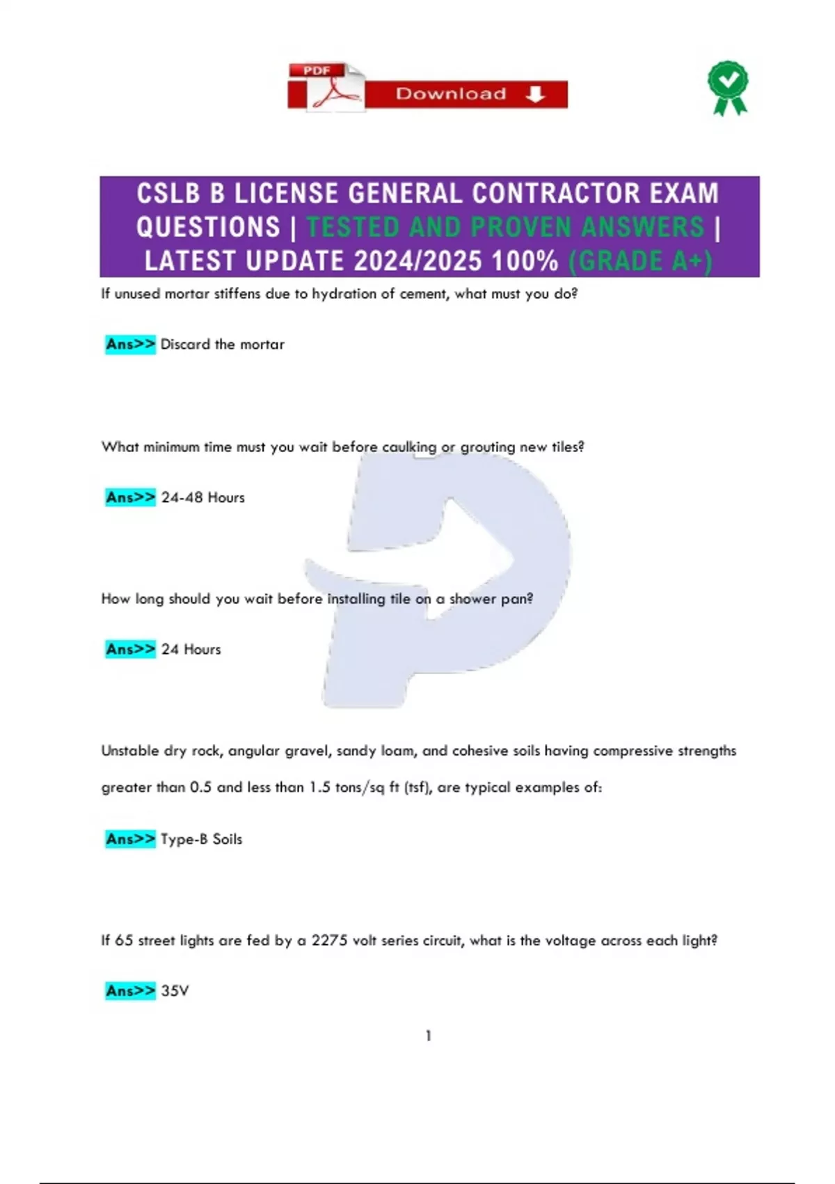 CSLB B LICENSE GENERAL CONTRACTOR EXAM QUESTIONS | TESTED AND PROVEN ANSWERS | LATEST UPDATE 2024/2025 100% (GRADE A+) CSLB B LICENSE GENERAL CONTRACTOR EXAM QUESTIONS | TESTED AND PROVEN ANSWERS | LATEST UPDATE 2024/2025 100% (GRADE A+)
