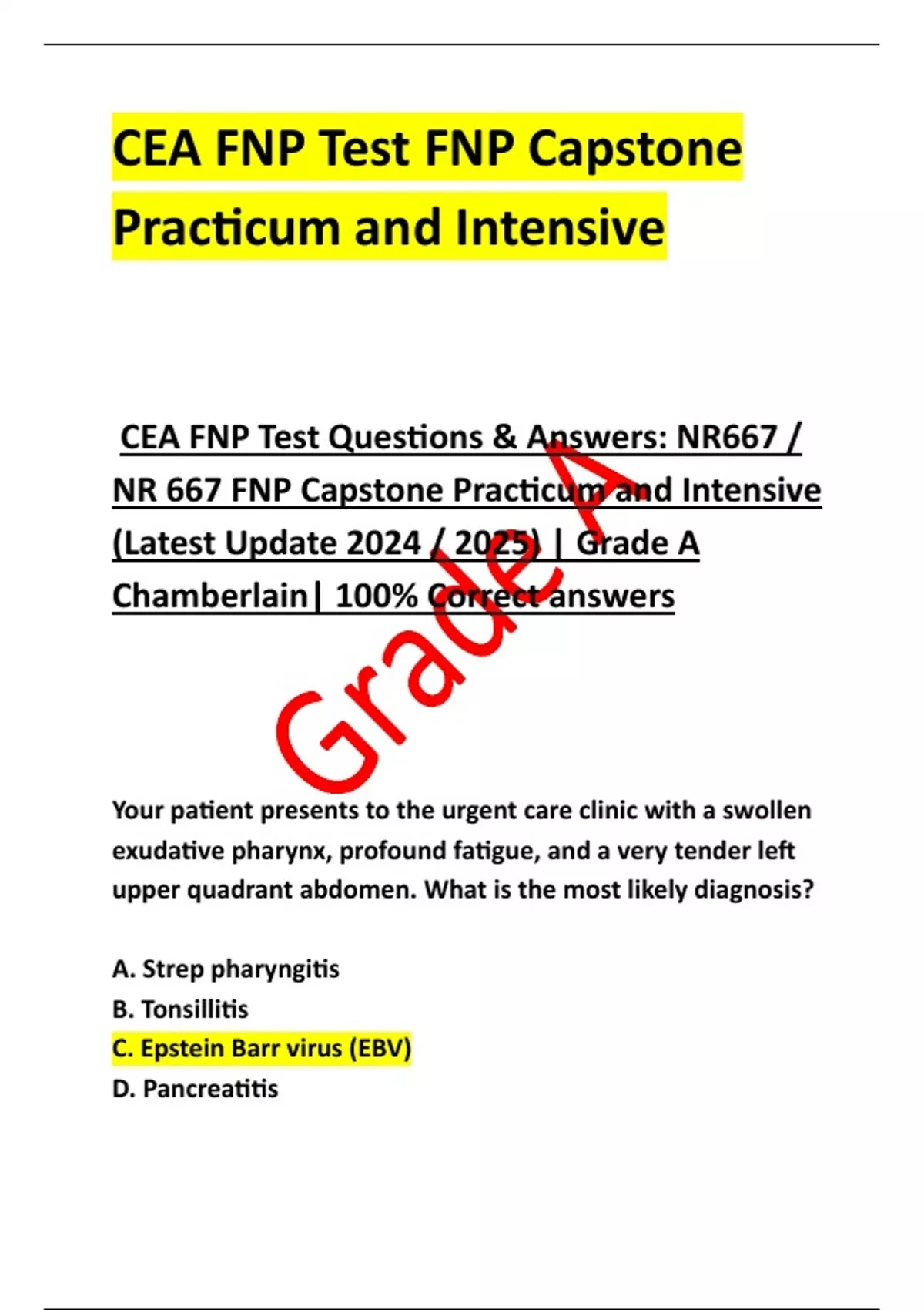 CEA FNP Test Questions & Answers: NR667 /
