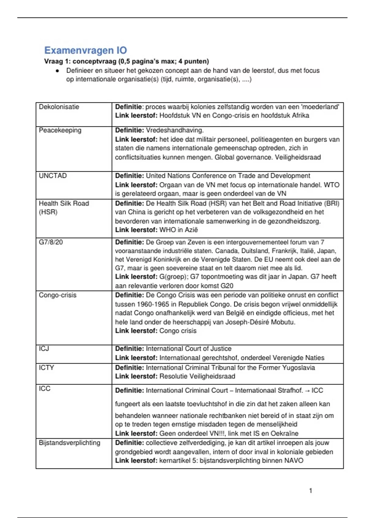op internationale organisatie(s) (tijd, ruimte, organisatie(s), ....)