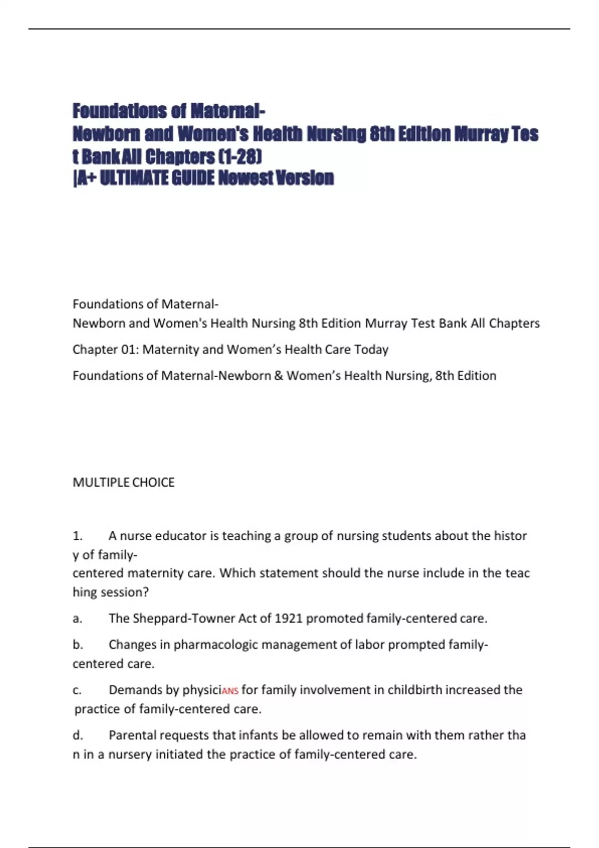 NewborniiandiiWomen'siiHealthiiNursingii8thiiEditioniiMurrayiiTestiiBankiiAlliiChapters