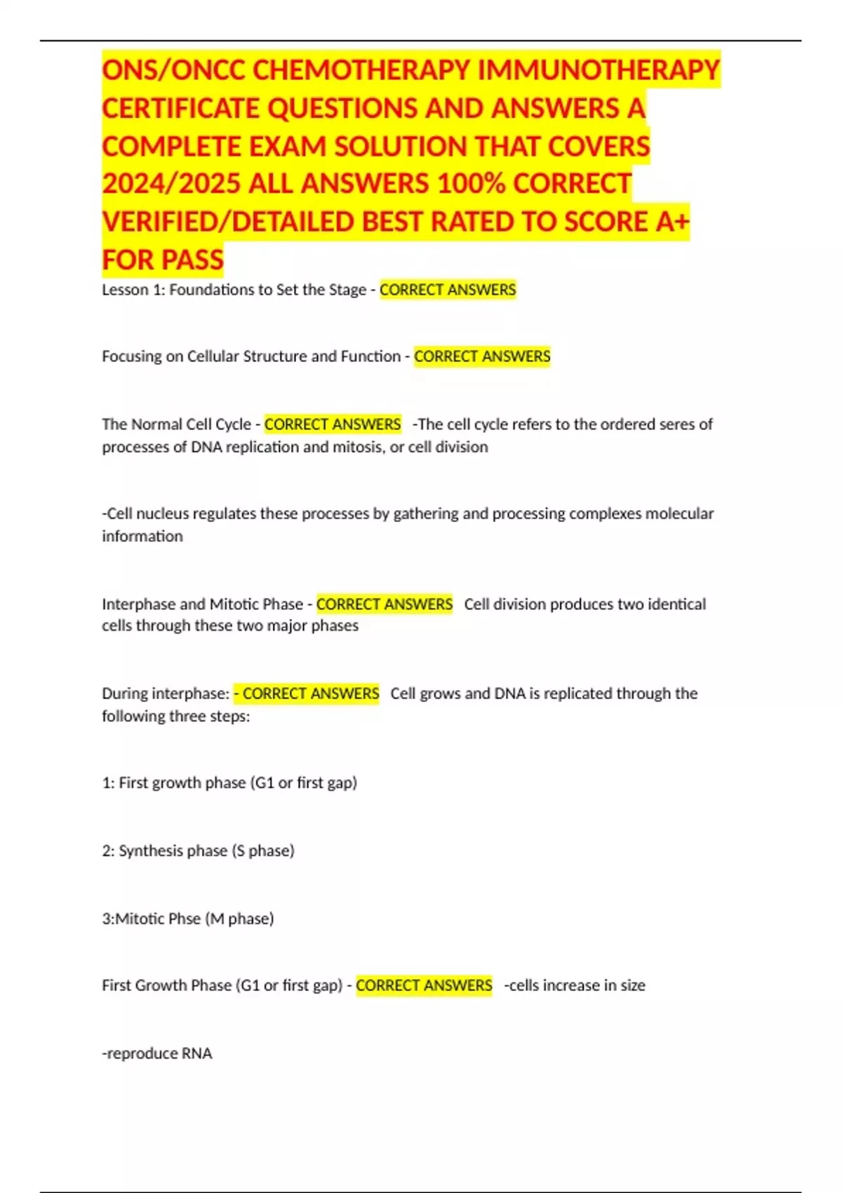 COMPLETE EXAM SOLUTION THAT COVERS