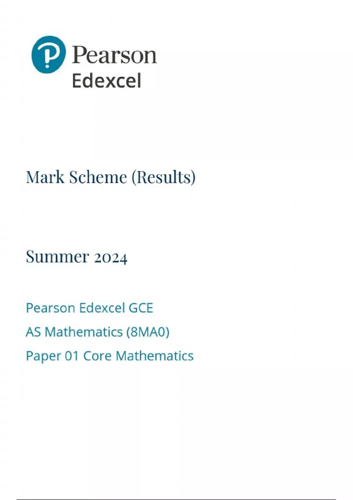 AS-Level EDEXCEL 2025 Mathematics Paper 1 Pure Mark Scheme