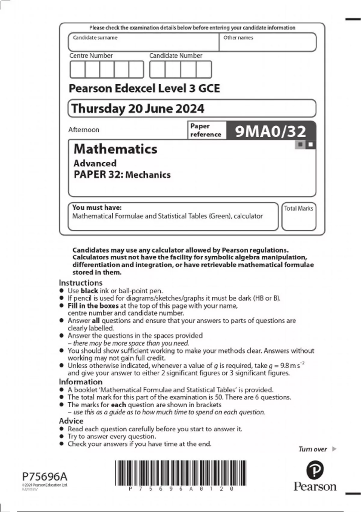 A-Level EDEXCEL 2025 Mathematics Paper 32: Mechanics