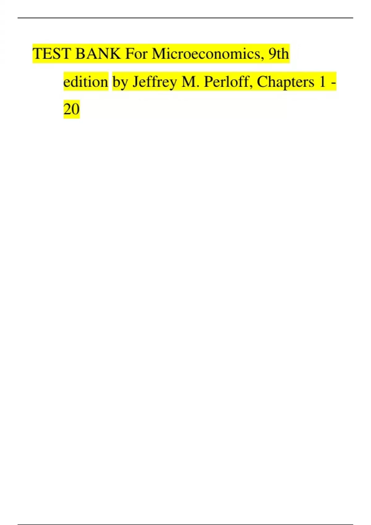 Test Bank for Microeconomics, 9th Edition by Jeffrey M. Perloff – Verified Chapters 1–20