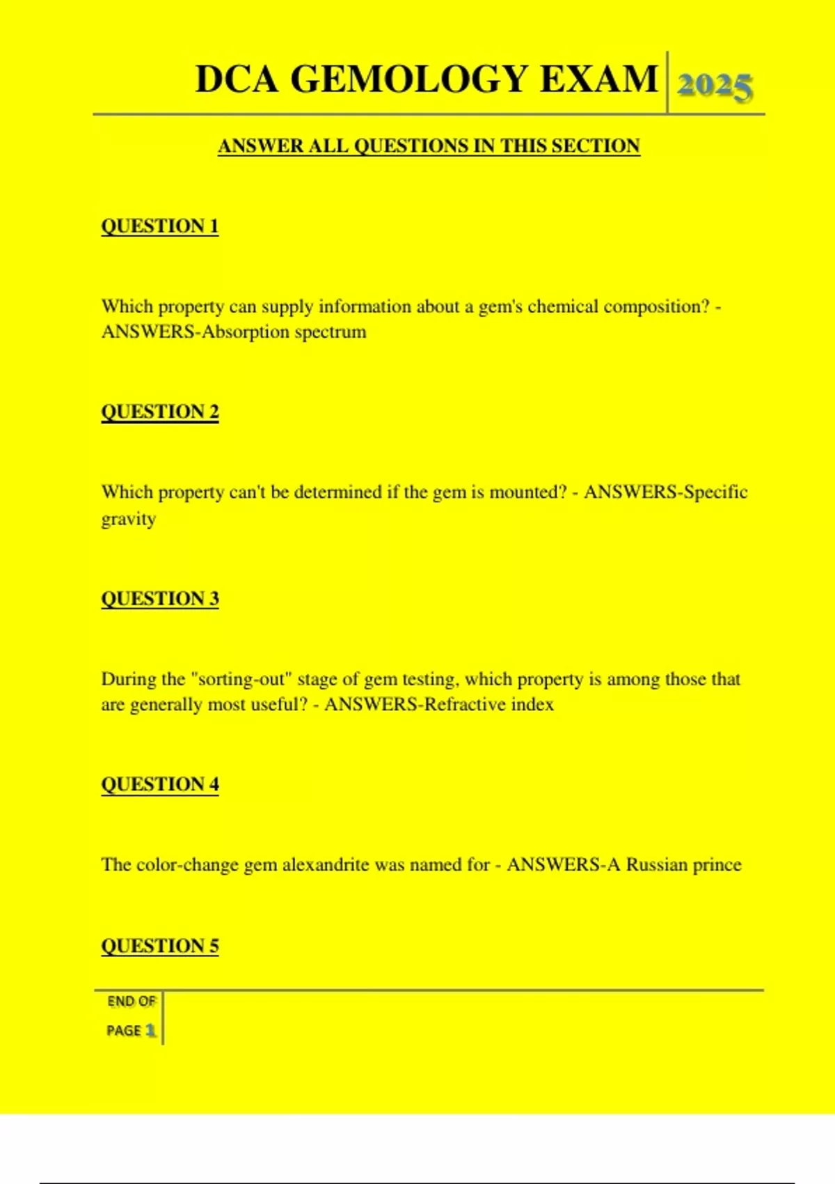 , DCA GEMOLOGY EXAM 2025