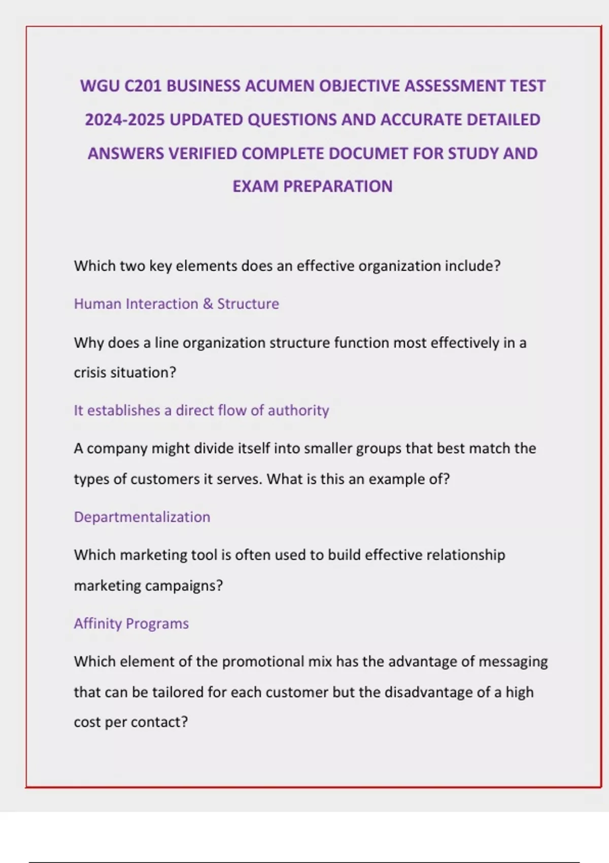 WGU C201 BUSINESS ACUMEN OBJECTIVE ASSESSMENT TEST UPDATED QUESTIONS AND ACCURATE DETAILED ANSWERS VERIFIED COMPLETE DOCUMET FOR STUDY AND EXAM PREPARATION WGU C201 BUSINESS ACUMEN OBJECTIVE ASSESSMENT TEST UPDATED QUESTIONS AND ACCURATE DETAILED ANSWERS VERIFIED COMPLETE DOCUMET FOR STUDY AND EXAM PREPARATION WGU C201 BUSINESS ACUMEN OBJECTIVE ASSESSMENT TEST UPDATED QUESTIONS AND ACCURATE DETAILED ANSWERS VERIFIED COMPLETE DOCUMET FOR STUDY AND EXAM PREPARATION WGU C201 BUSINESS ACUMEN OBJECTIVE ASSESSMENT TEST UPDATED QUESTIONS AND ACCURATE DETAILED ANSWERS VERIFIED COMPLETE DOCUMET FOR STUDY AND EXAM PREPARATION WGU C201 BUSINESS ACUMEN OBJECTIVE ASSESSMENT TEST UPDATED QUESTIONS AND ACCURATE DETAILED ANSWERS VERIFIED COMPLETE DOCUMET FOR STUDY AND EXAM PREPARATION WGU C201 BUSINESS ACUMEN OBJECTIVE ASSESSMENT TEST UPDATED QUESTIONS AND ACCURATE DETAILED ANSWERS VERIFIED COMPLETE DOCUMET FOR STUDY AND EXAM PREPARATION WGU C201 BUSINESS ACUMEN OBJECTIVE ASSESSMENT TEST UPDATED QUESTIONS AND ACCURATE DETAILED ANSWERS VERIFIED COMPLETE DOCUMET FOR STUDY AND EXAM PREPARATION