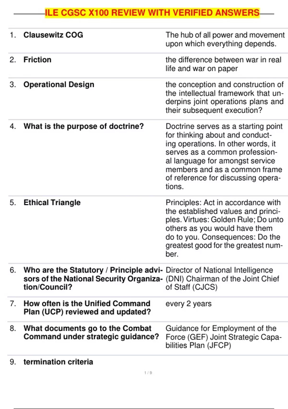 , ILE CGSC X100 REVIEW WITH VERIFIED ANSWERS