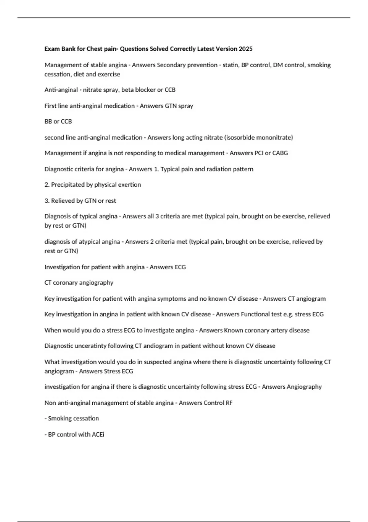 Diagnostic criteria for angina - Answers 1. Typical pain and radiation pattern