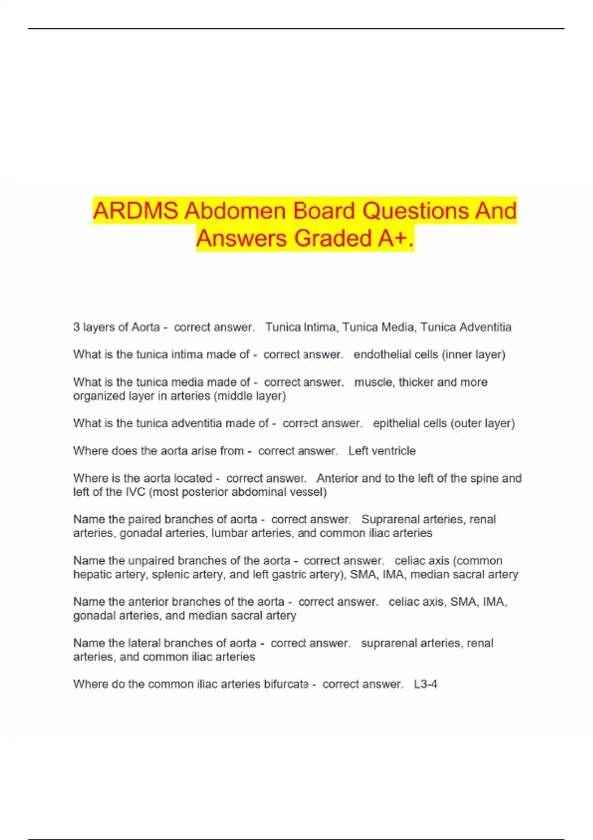 ARDMS Abdomen Board Questions And Answers Graded A+.
