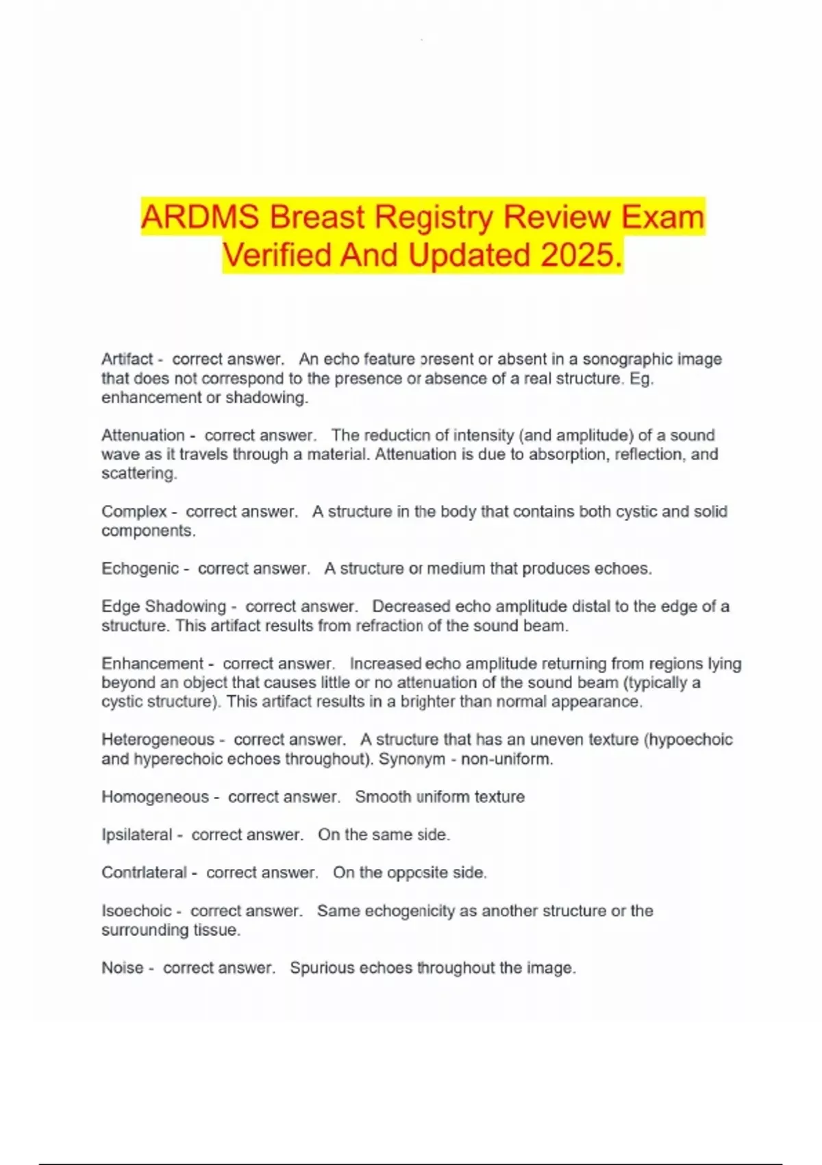 ARDMS Breast Registry Review Exam Verified And Updated 2025.