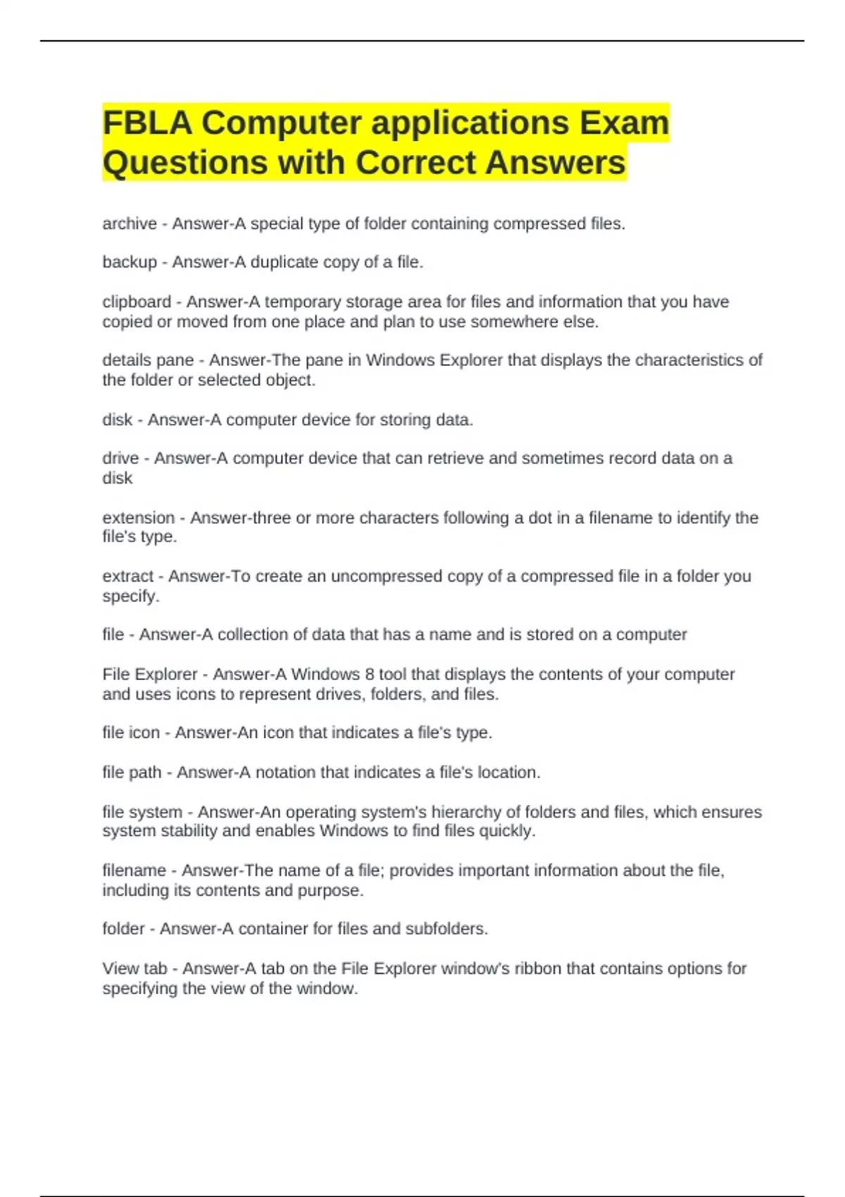 FBLA Computer applications Exam