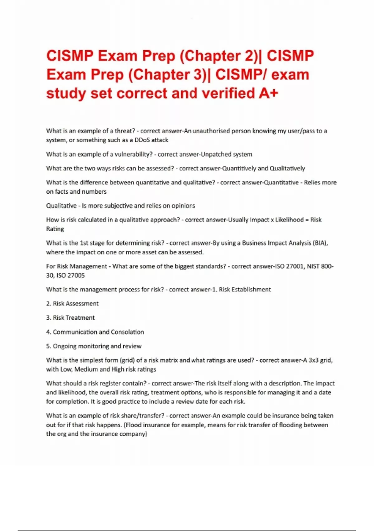 CISMP Exam Prep (Chapter 2) / chapter 3 study guide questions and answers verifie d100%CISMP Exam Prep (Chapter 2) / chapter 3 study guide questions and answers verifie d100%CISMP Exam Prep (Chapter 2) / chapter 3 study guide questions and answers verifie d100%CISMP Exam Prep (Chapter 2) / chapter 3 study guide questions and answers verifie d100%CISMP Exam Prep (Chapter 2) / chapter 3 study guide questions and answers verifie d100%CISMP Exam Prep (Chapter 2) / chapter 3 study guide questions and answers verifie d100%