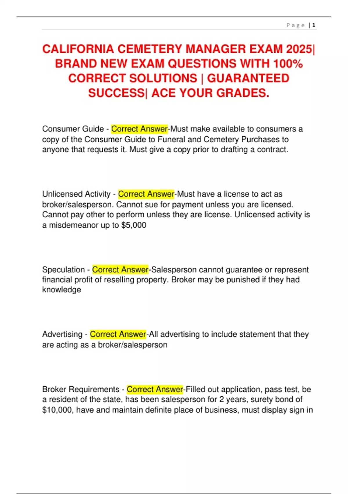 CALIFORNIA CEMETERY MANAGER EXAM 2025|