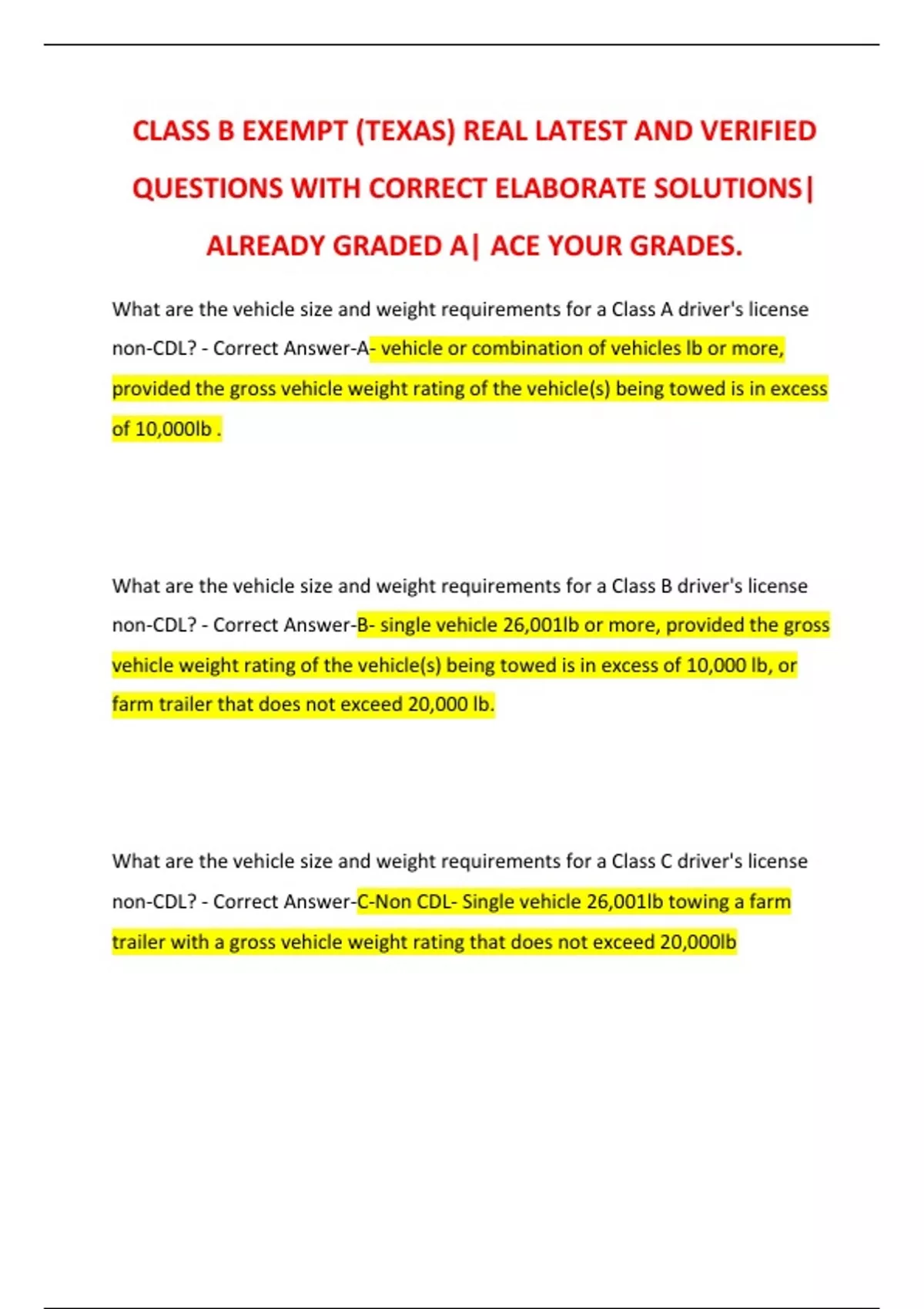non-CDL? - Correct Answer-A- vehicle or combination of vehicles lb or more,