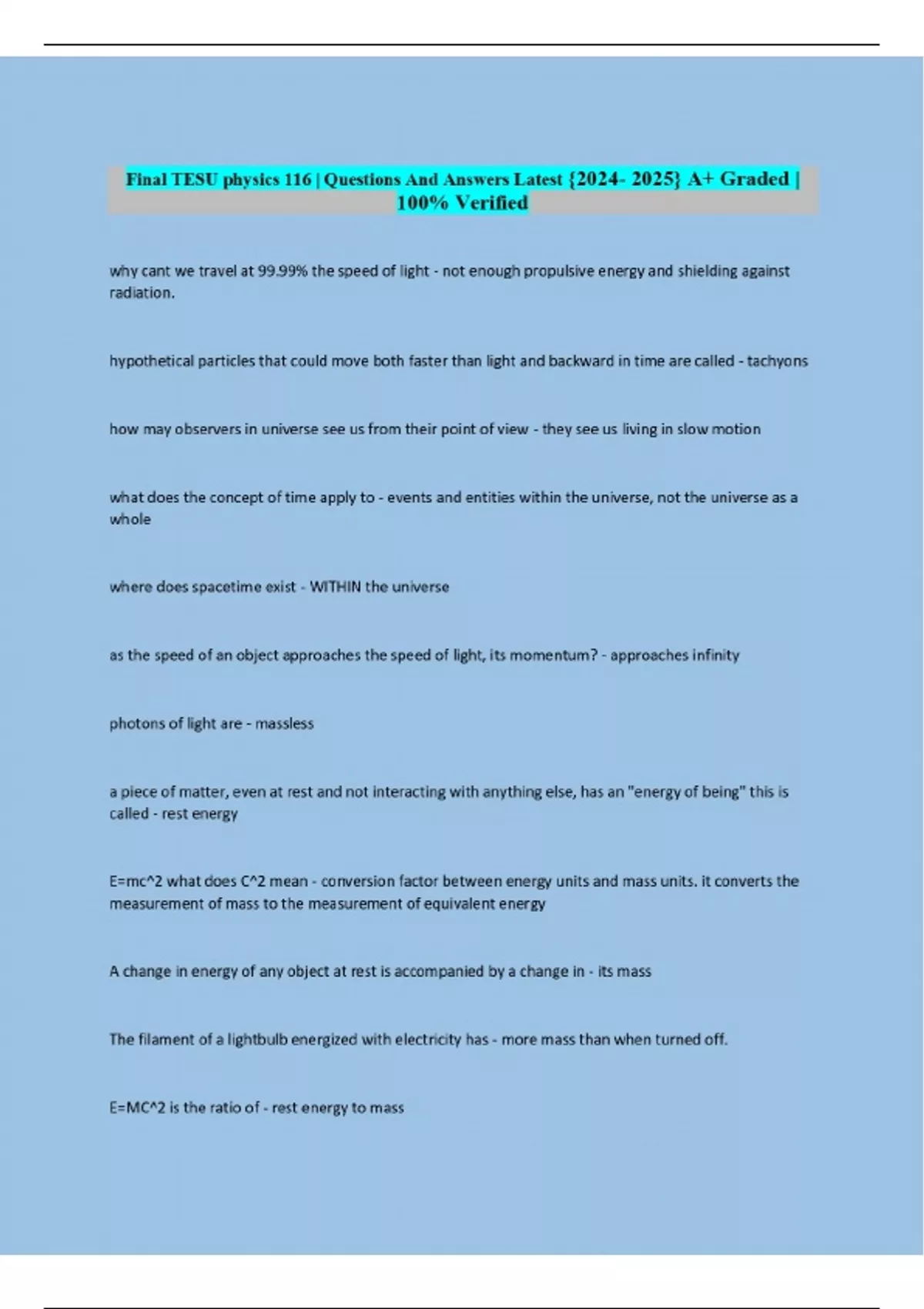 final tesu physics 116 questions and answers