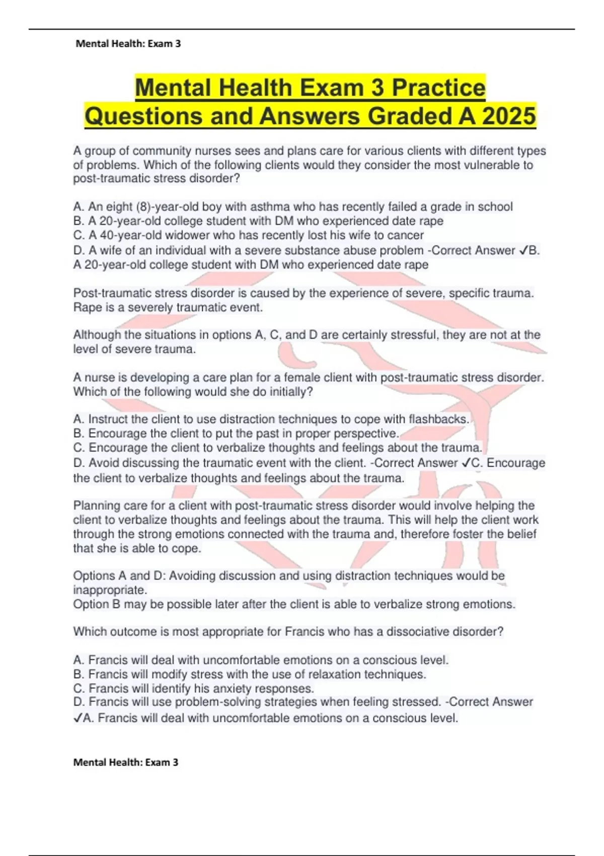 Mental Health Exam 3 Practice Questions and Answers Graded A 2025