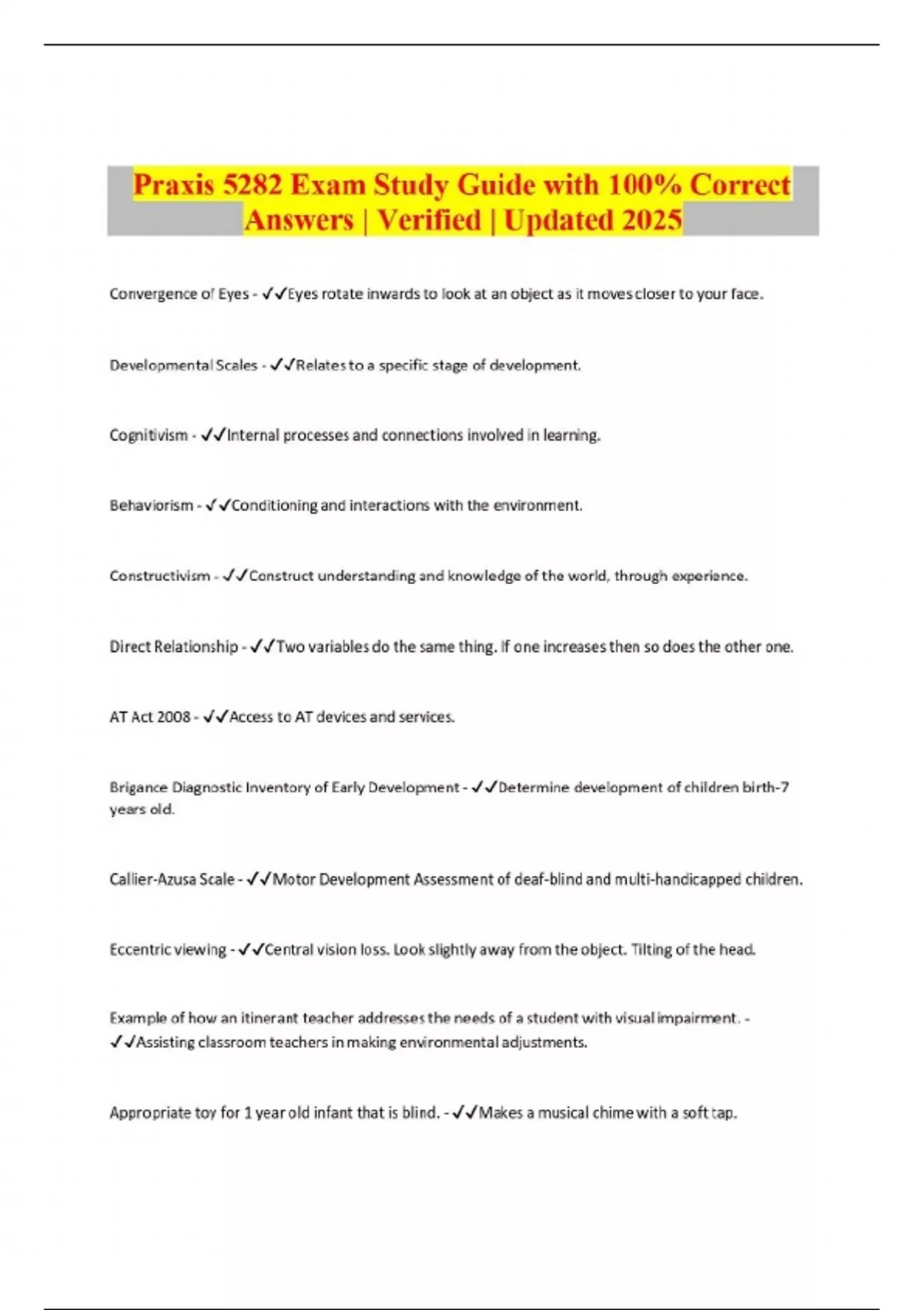 Praxis 5282 Exam Study Guide with 100% Correct Answers | Verified | Updated 2025