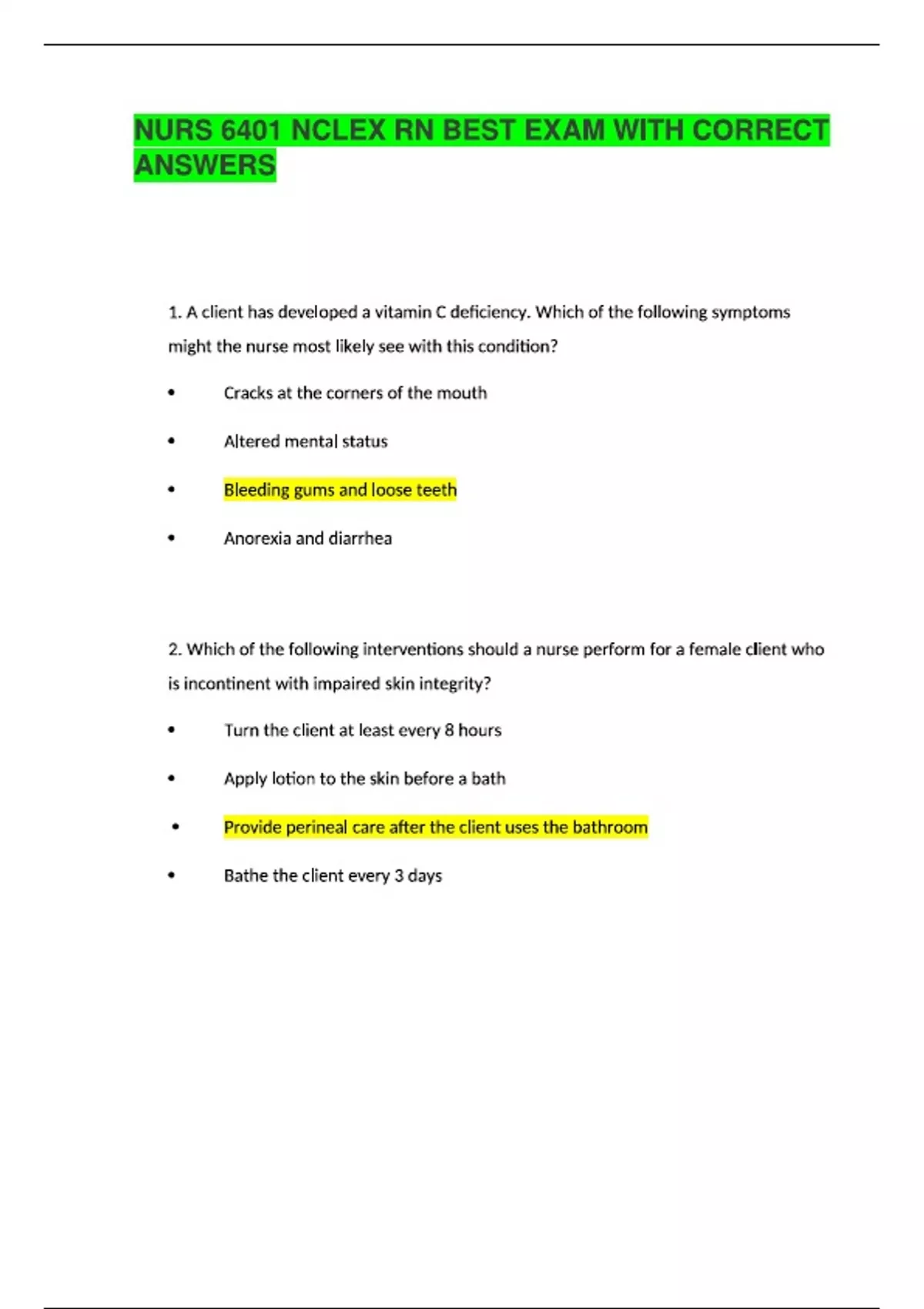 NURS 6401 NCLEX RN| ALL FREQUENTLY TESTED ACTUAL EXAM QUESTIONS AND ANSWERS | ACCURATE AND VERIFIED FOR GUARANTEED PASS | ALREADY GRADED A+