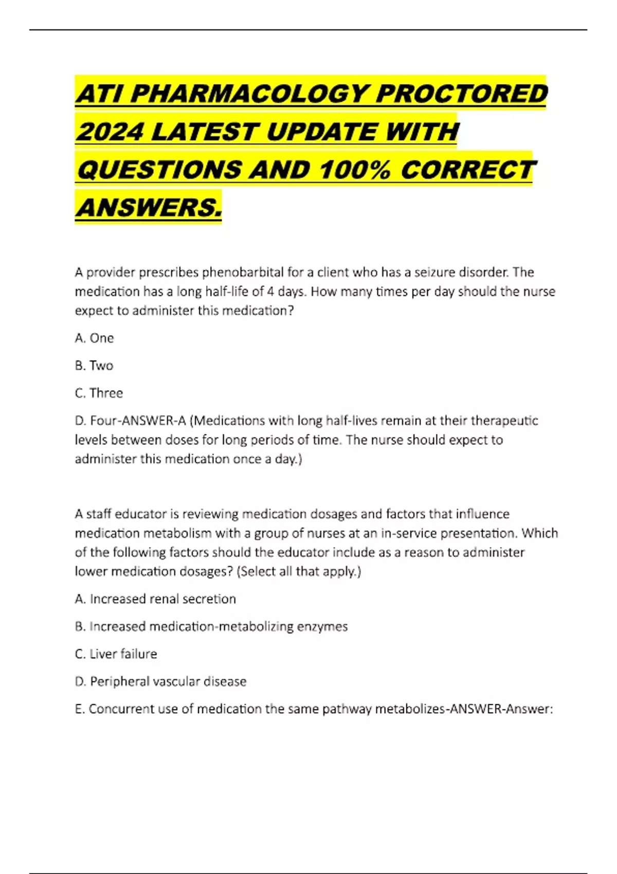 ATI PHARMACOLOGY PROCTORED| ALL FREQUENTLY TESTED ACTUAL EXAM QUESTIONS AND ANSWERS | ACCURATE AND VERIFIED FOR GUARANTEED PASS | ALREADY GRADED A+