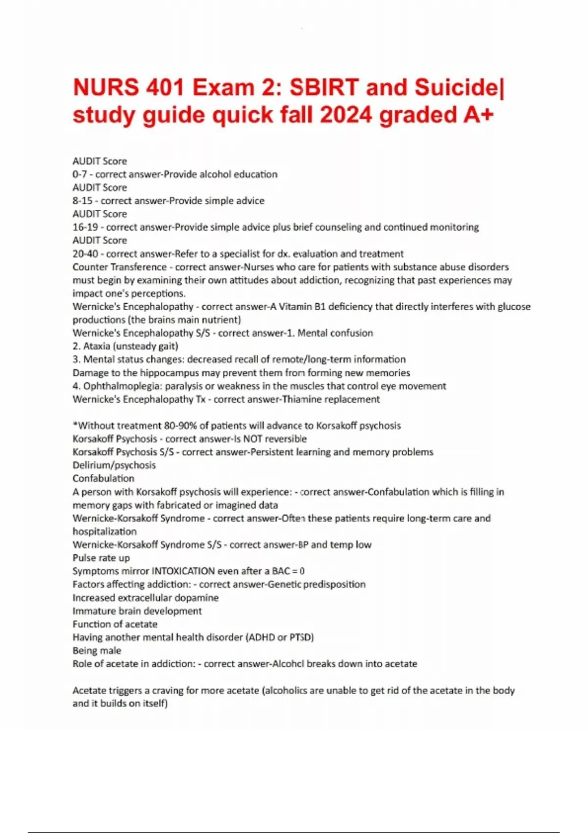 NURS 401 Exam 2 SBIRT and Suicide study guide quick fall 2024 graded A+NURS 401 Exam 2 SBIRT and Suicide study guide quick fall 2024 graded A+NURS 401 Exam 2 SBIRT and Suicide study guide quick fall 2024 graded A+NURS 401 Exam 2 SBIRT and Suicide study guide quick fall 2024 graded A+NURS 401 Exam 2 SBIRT and Suicide study guide quick fall 2024 graded A+NURS 401 Exam 2 SBIRT and Suicide study guide quick fall 2024 graded A+NURS 401 Exam 2 SBIRT and Suicide study guide quick fall 2024 graded A+