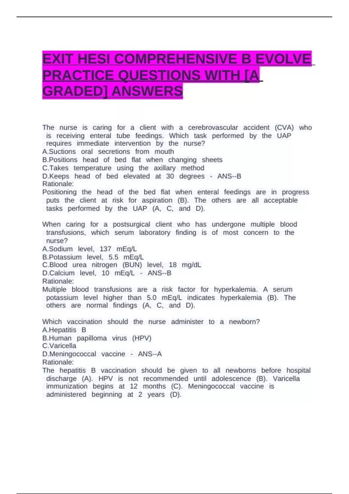 EXIT HESI COMPREHENSIVE B EVOLVE PRACTICE QUESTIONS WITH [A GRADED] ANSWERS