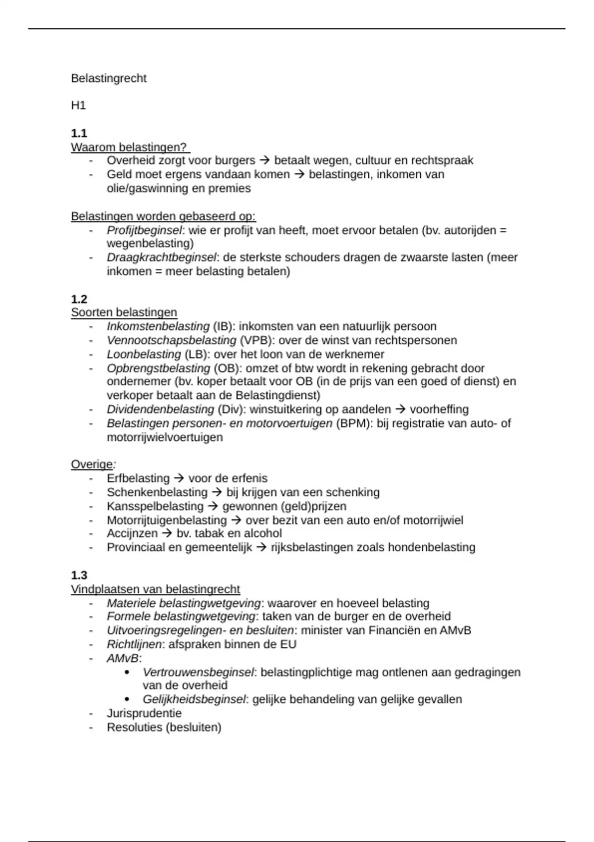 Praktisch fiscaalrecht --> belastingrecht. H1 - H5