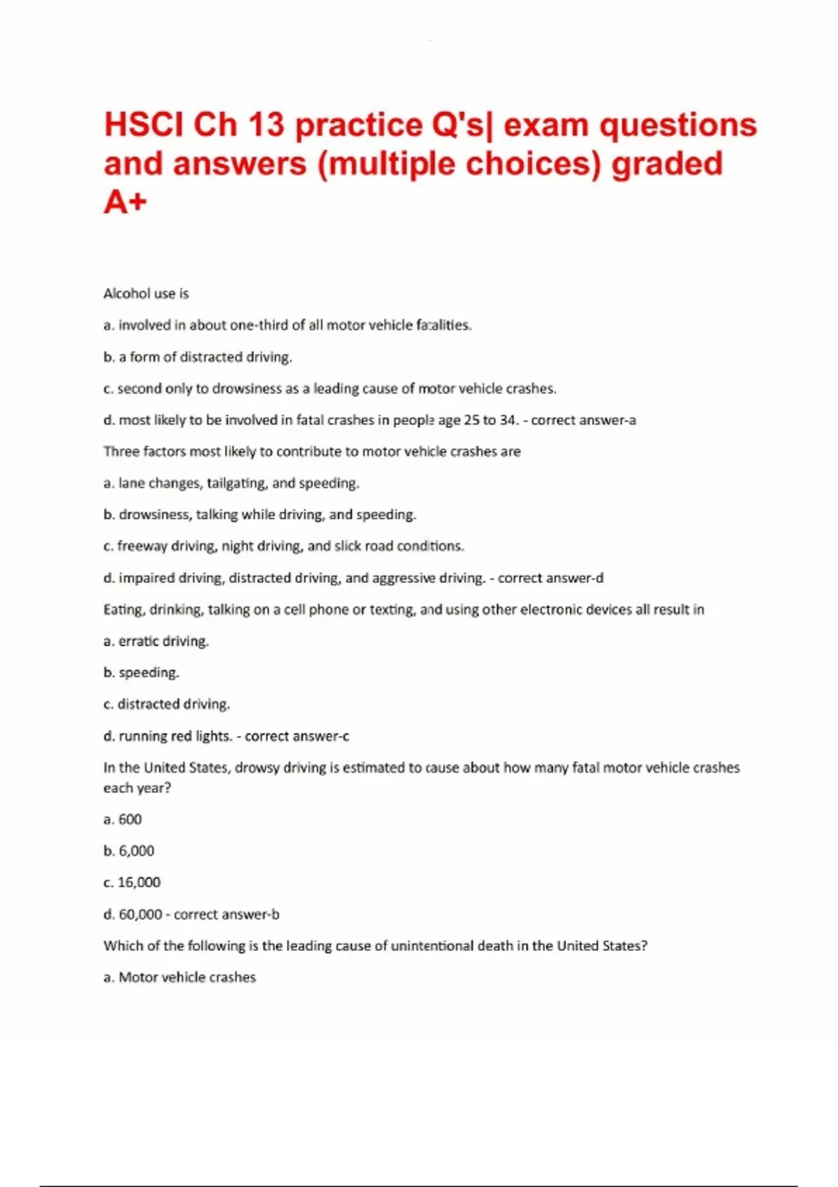 HSCI Ch 13 practice Q's exam questions and answers(multiple choices) graded A+HSCI Ch 13 practice Q's exam questions and answers(multiple choices) graded A+HSCI Ch 13 practice Q's exam questions and answers(multiple choices) graded A+HSCI Ch 13 practice Q's exam questions and answers(multiple choices) graded A+HSCI Ch 13 practice Q's exam questions and answers(multiple choices) graded A+HSCI Ch 13 practice Q's exam questions and answers(multiple choices) graded A+
