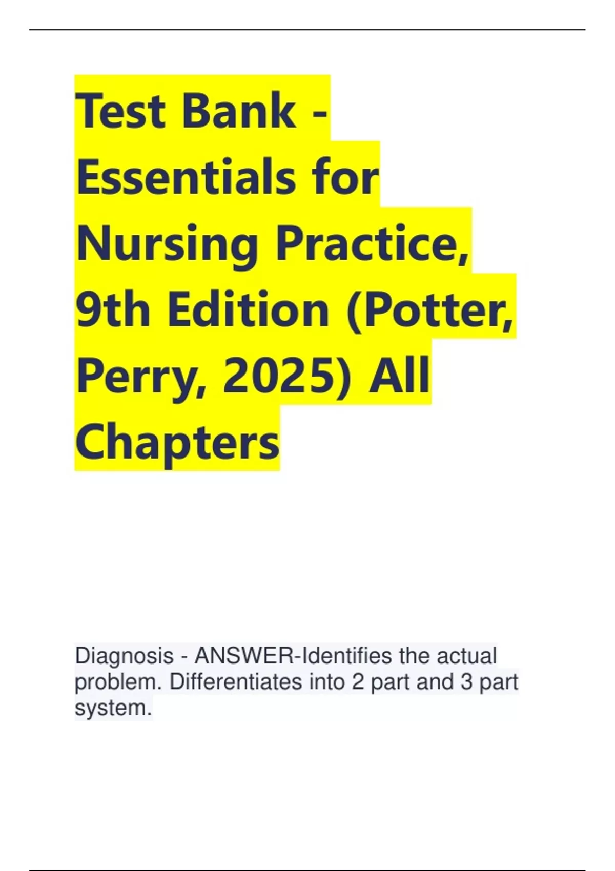 Diagnosis - ANSWER-Identifies the actual