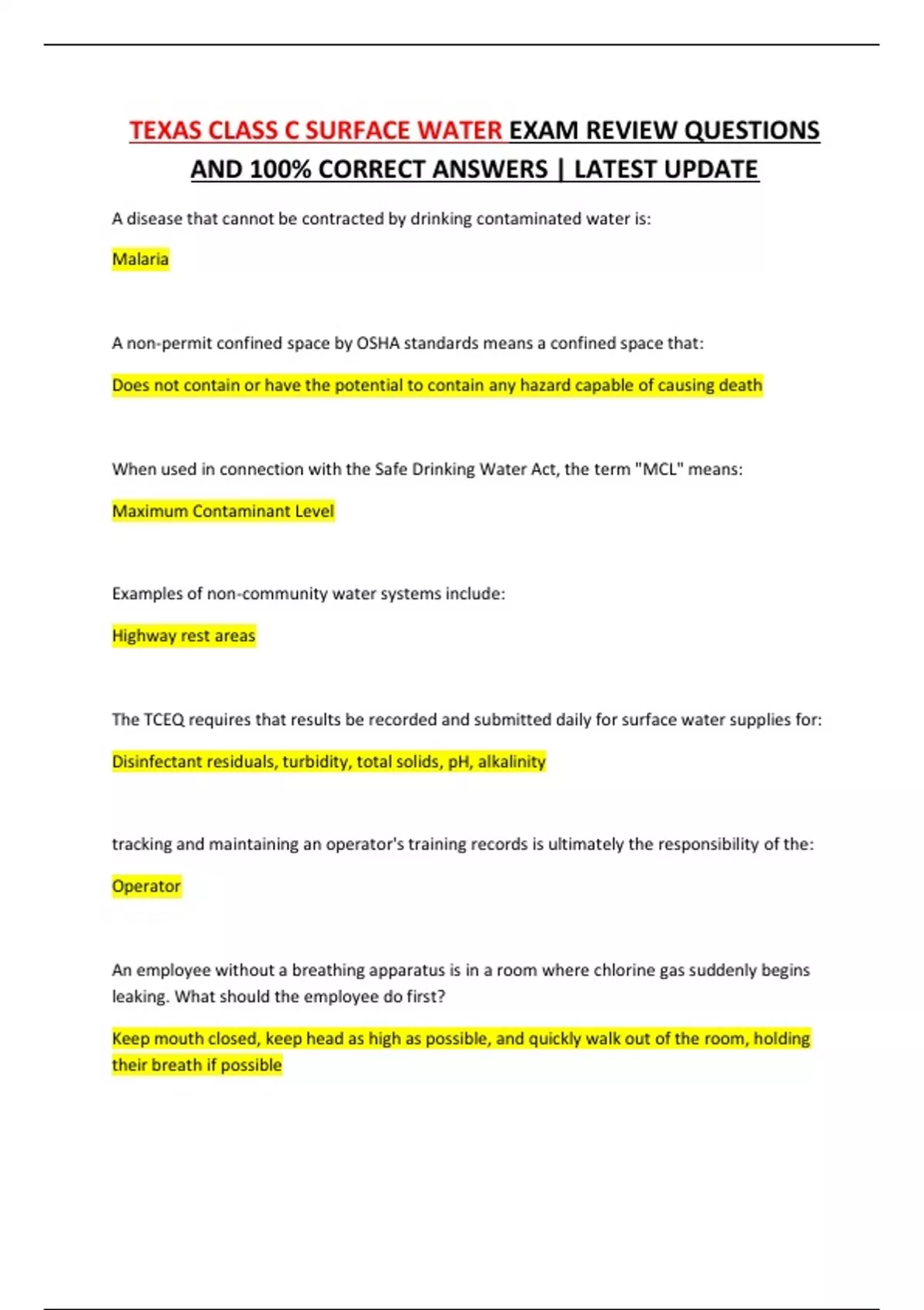 TEXAS CLASS C SURFACE WATER EXAM REVIEW QUESTIONS