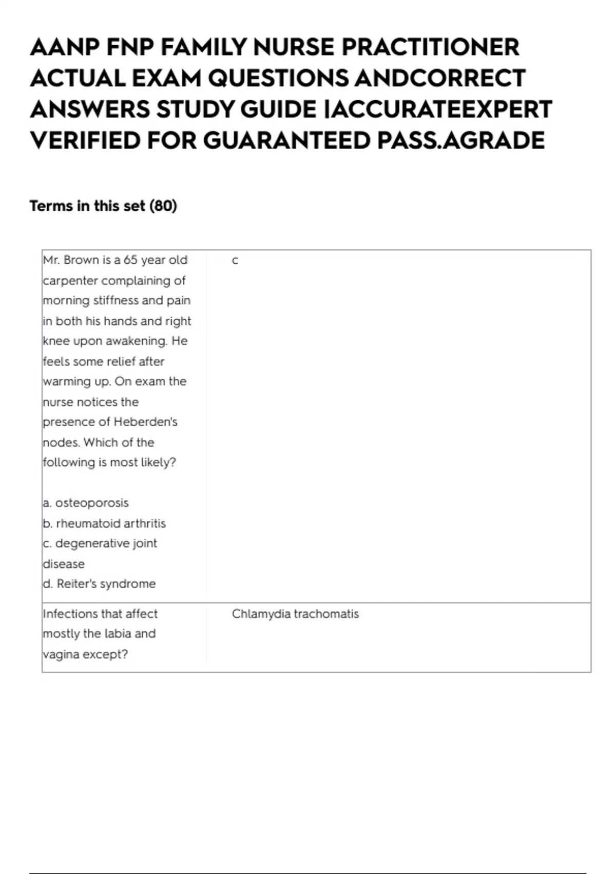 ACTUAL EXAM QUESTIONS ANDCORRECT