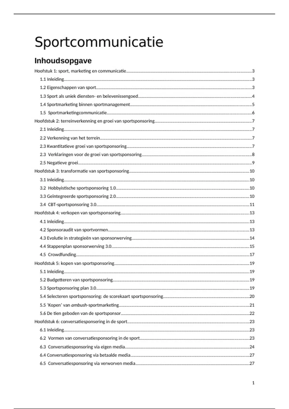 Hoofdstuk 6: conversatiesponsering in de sport....................................................................................................23