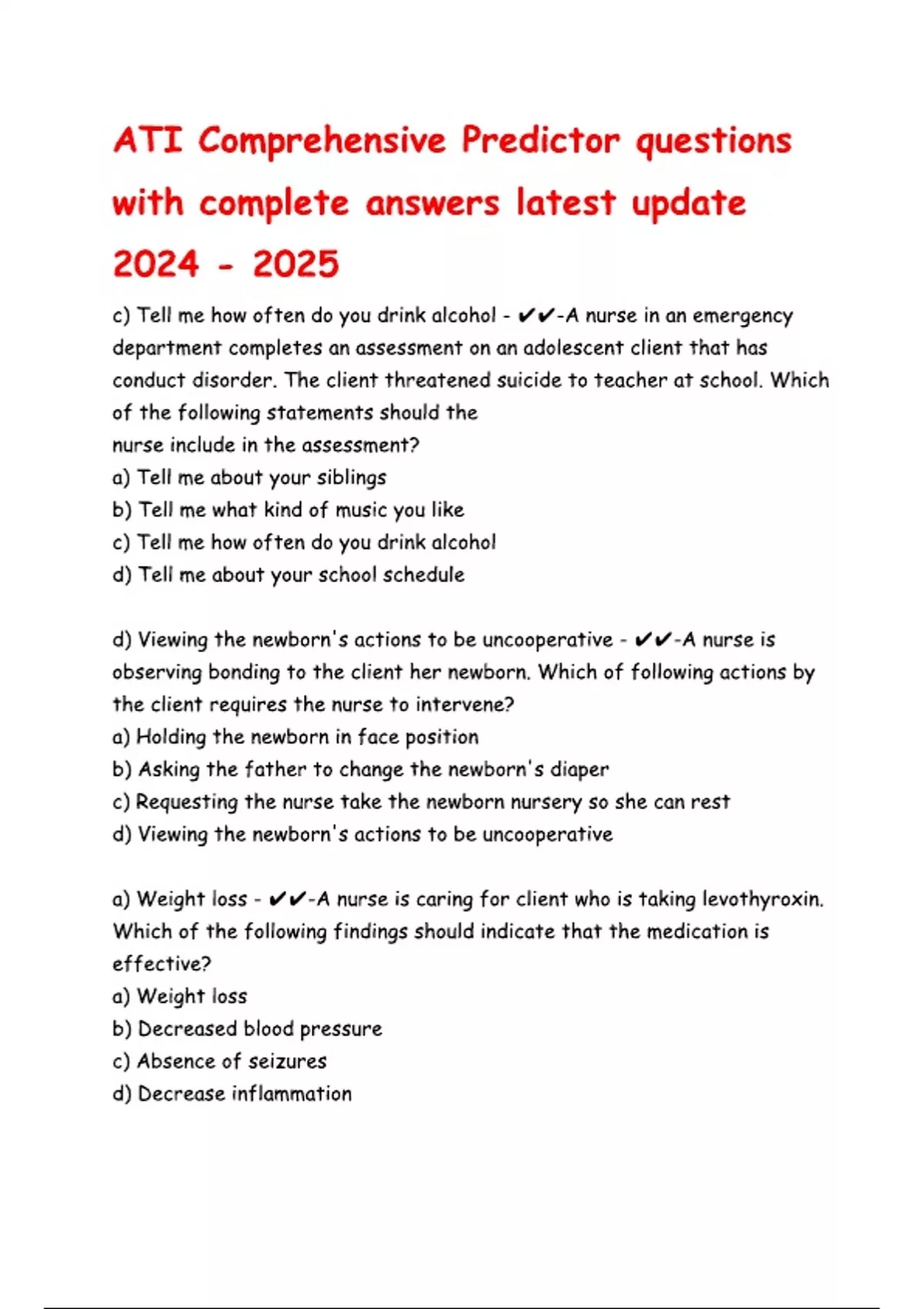 ATI Comprehensive Predictor questions with complete answers latest update .