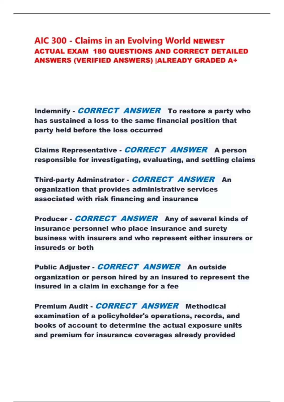 Loss Adjustment Expenses (LAE) - CORRECT ANSWER
