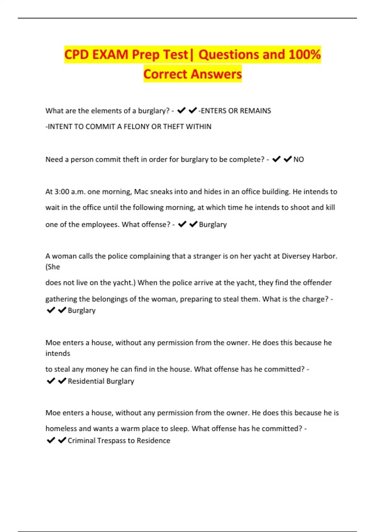 CPD EXAM Prep Test| Questions and 100%
