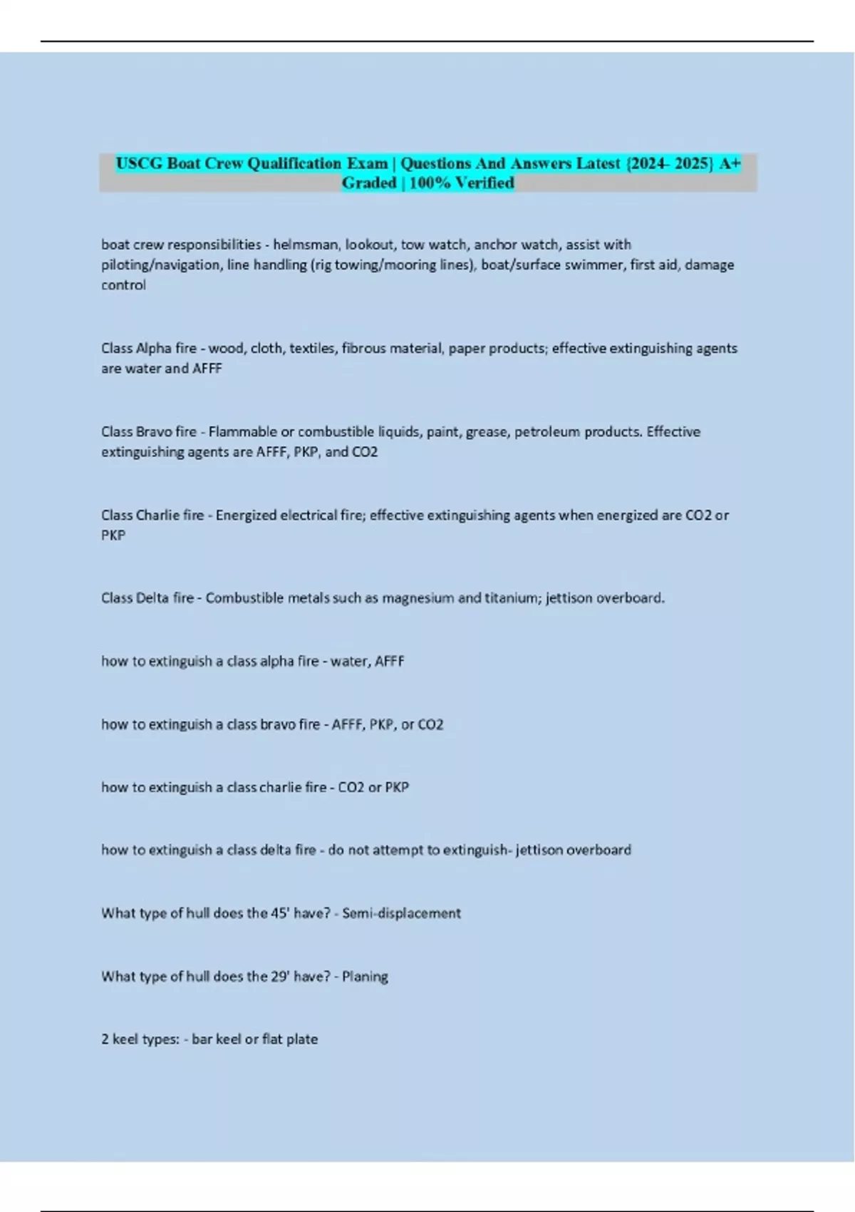 USCG Boat Crew Qualification Exam | Questions And Answers