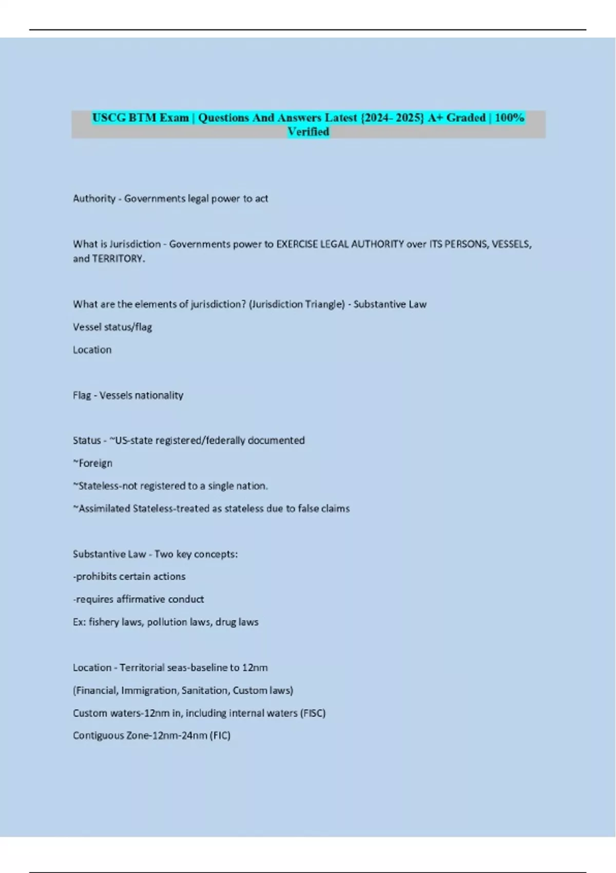 USCG BTM Exam | Questions And Answers