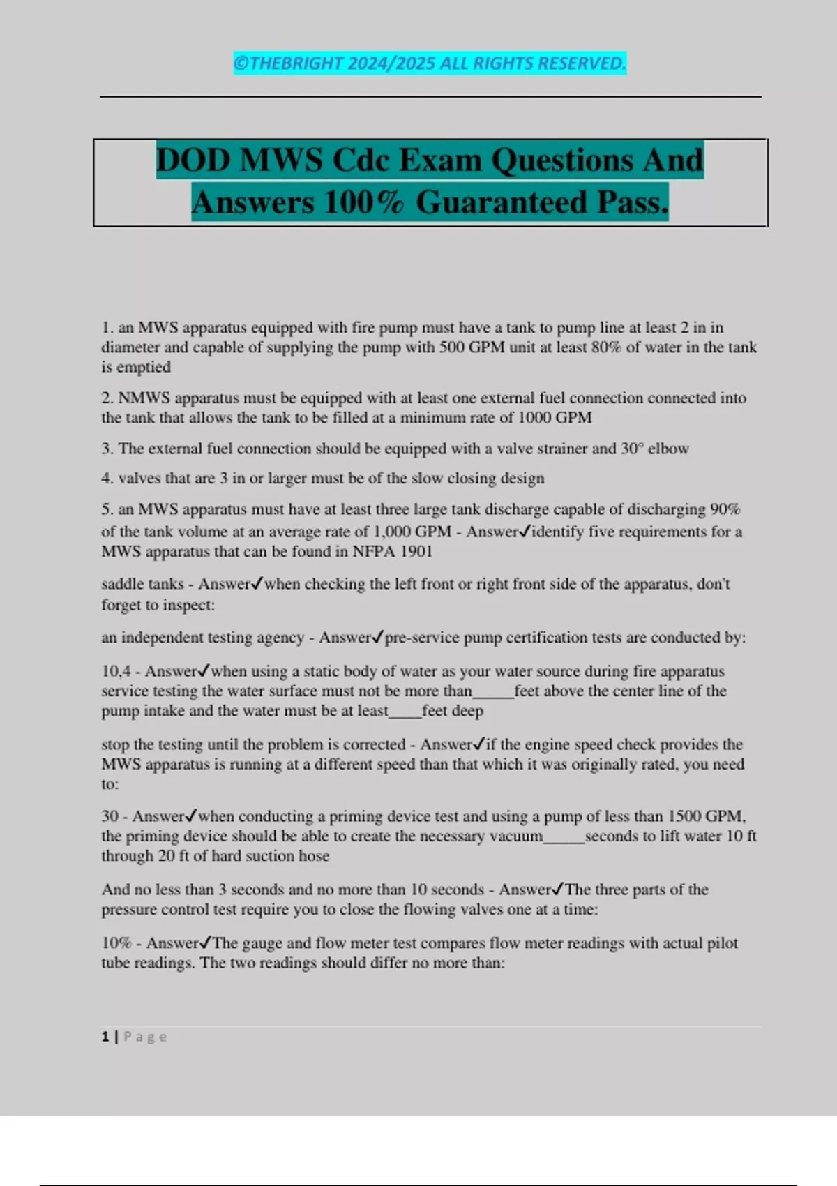NFPA 1901 - Answer✔The tank to pump flow rate test measures whether the piping between an
