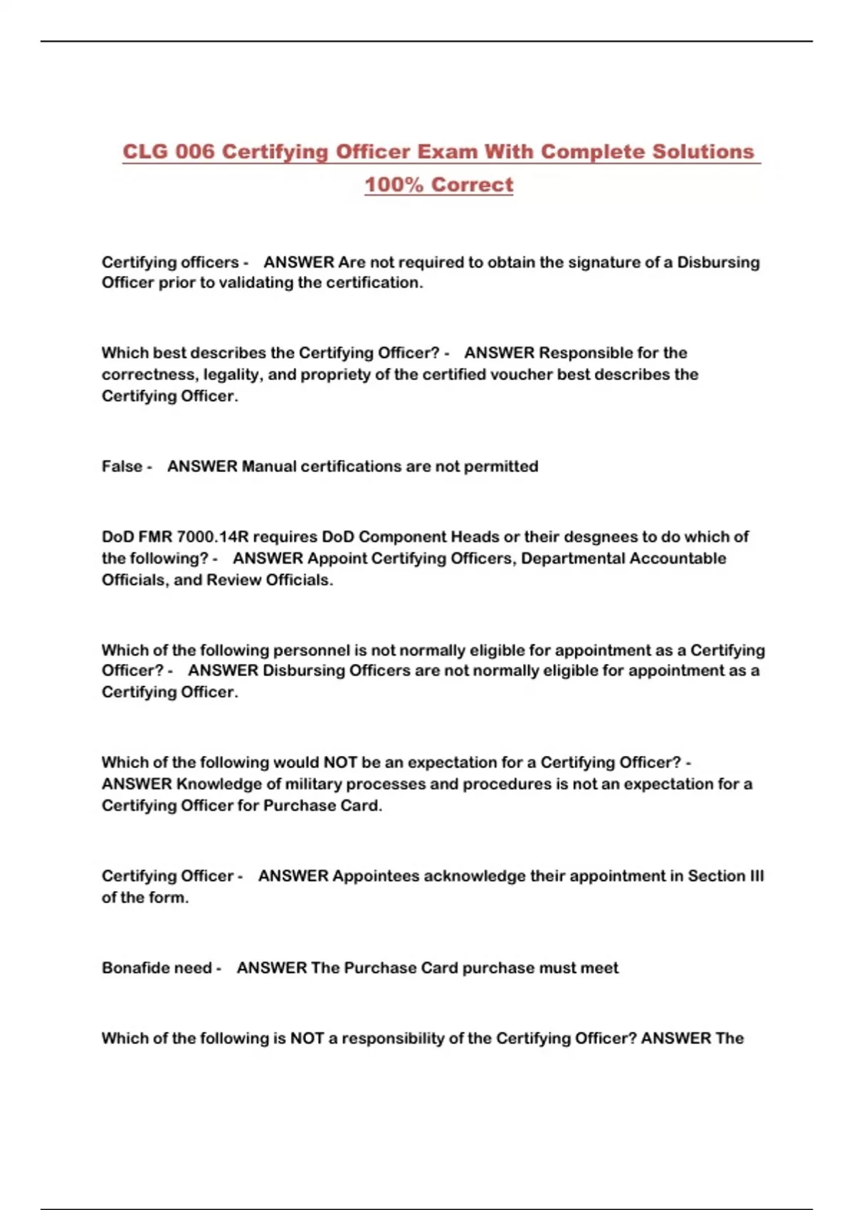 CLG 006 Certifying Officer Exam With Complete Solutions