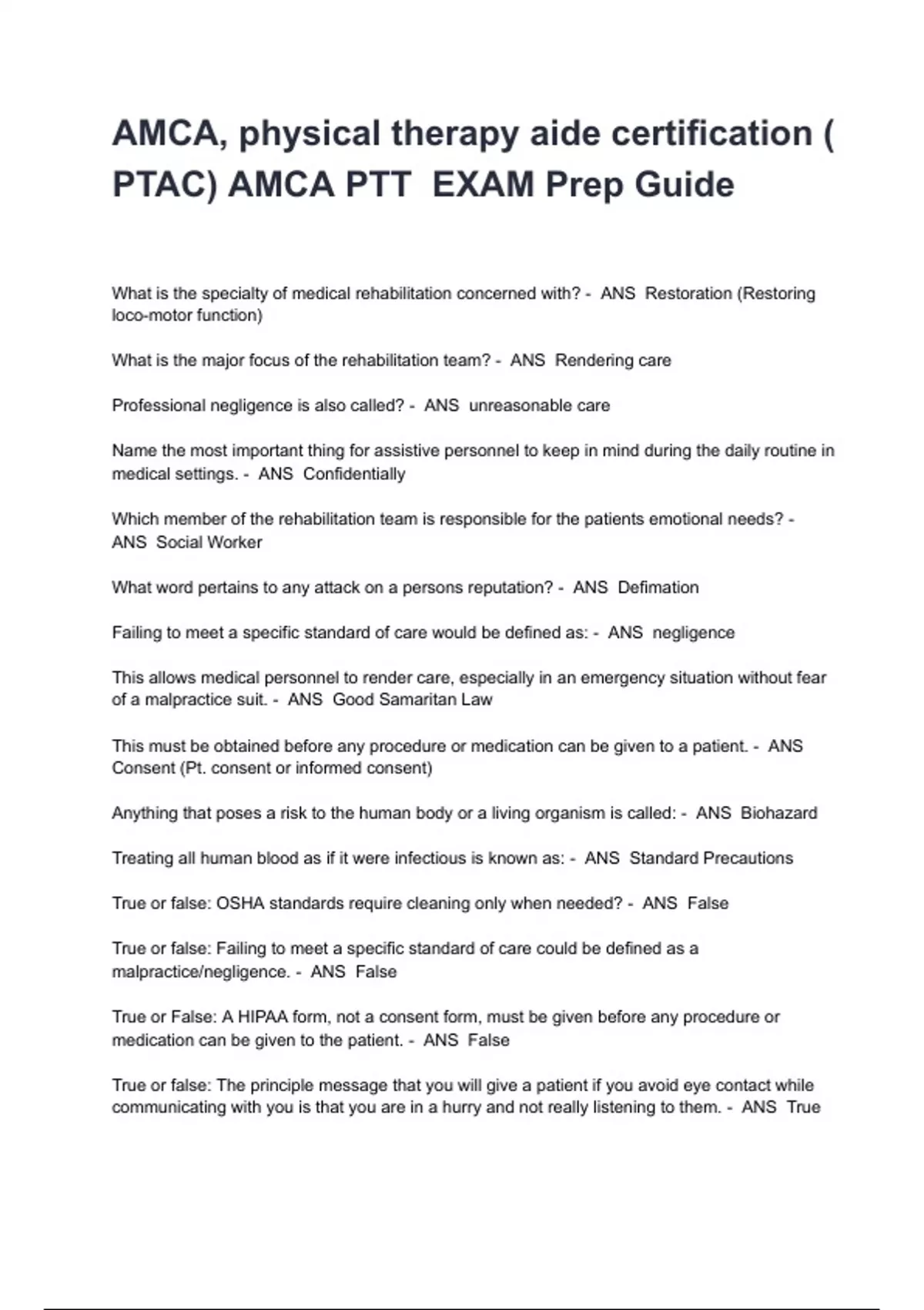 AMCA, physical therapy aide certification ( PTAC) AMCA PTT EXAM Prep Guide