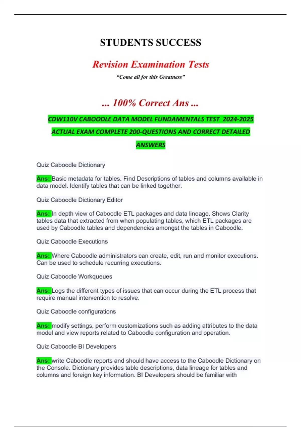 CDW110V CABOODLE DATA MODEL FUNDAMENTALS TEST 2024-2025