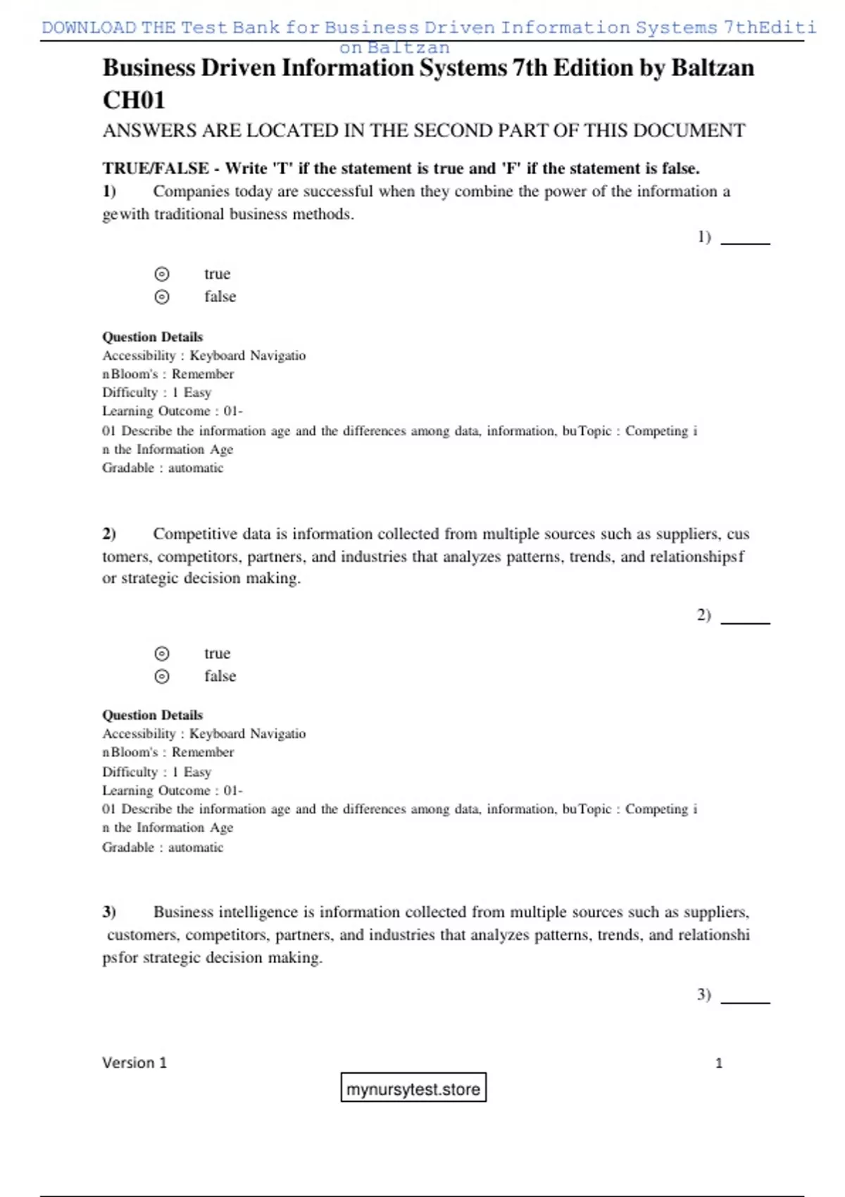 DOWNLOAD THE Test Bank for Business Driven Information Systems 7thEditi