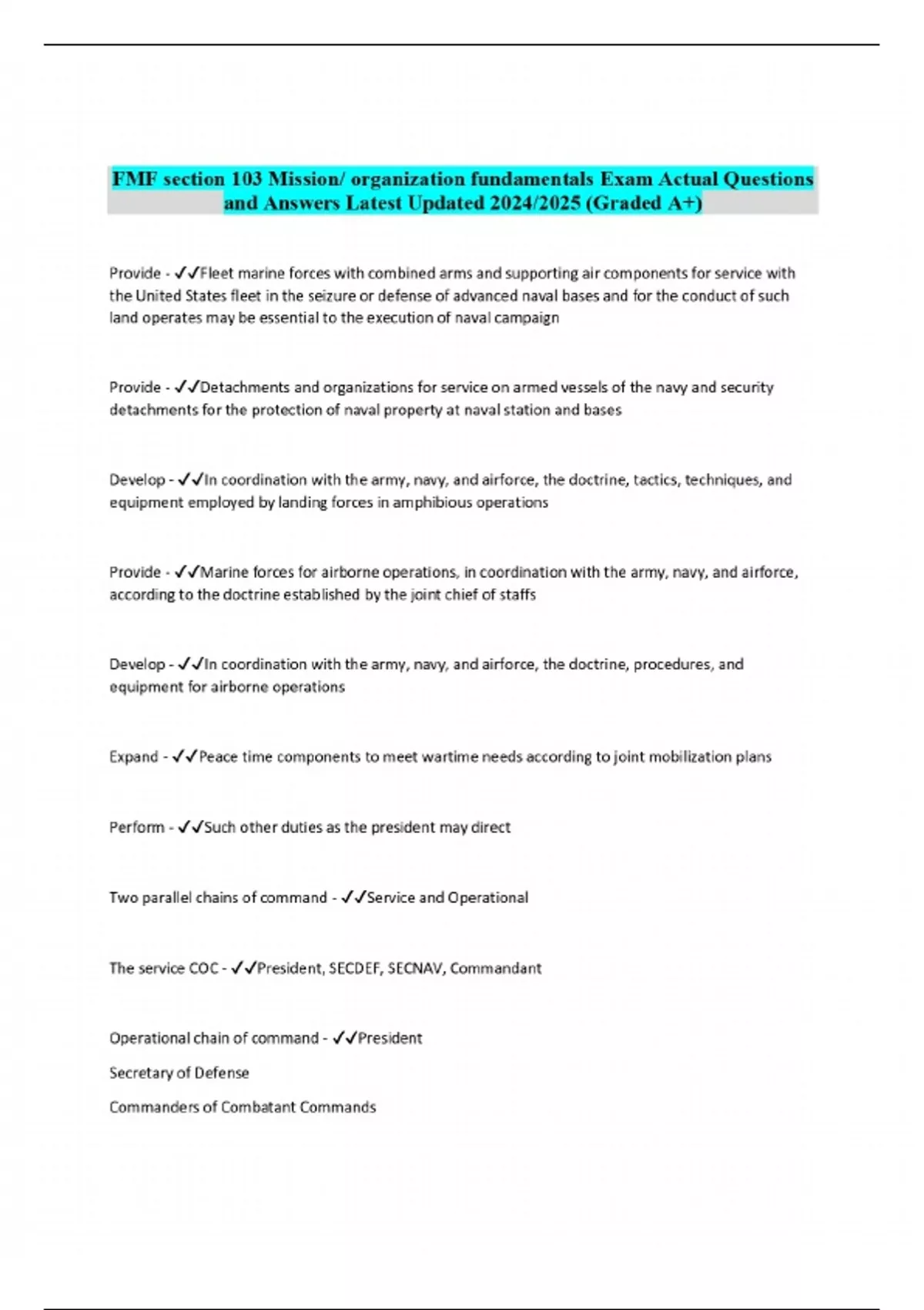 FMF section 103 Mission/ organization fundamentals Exam Actual Questions and Answers