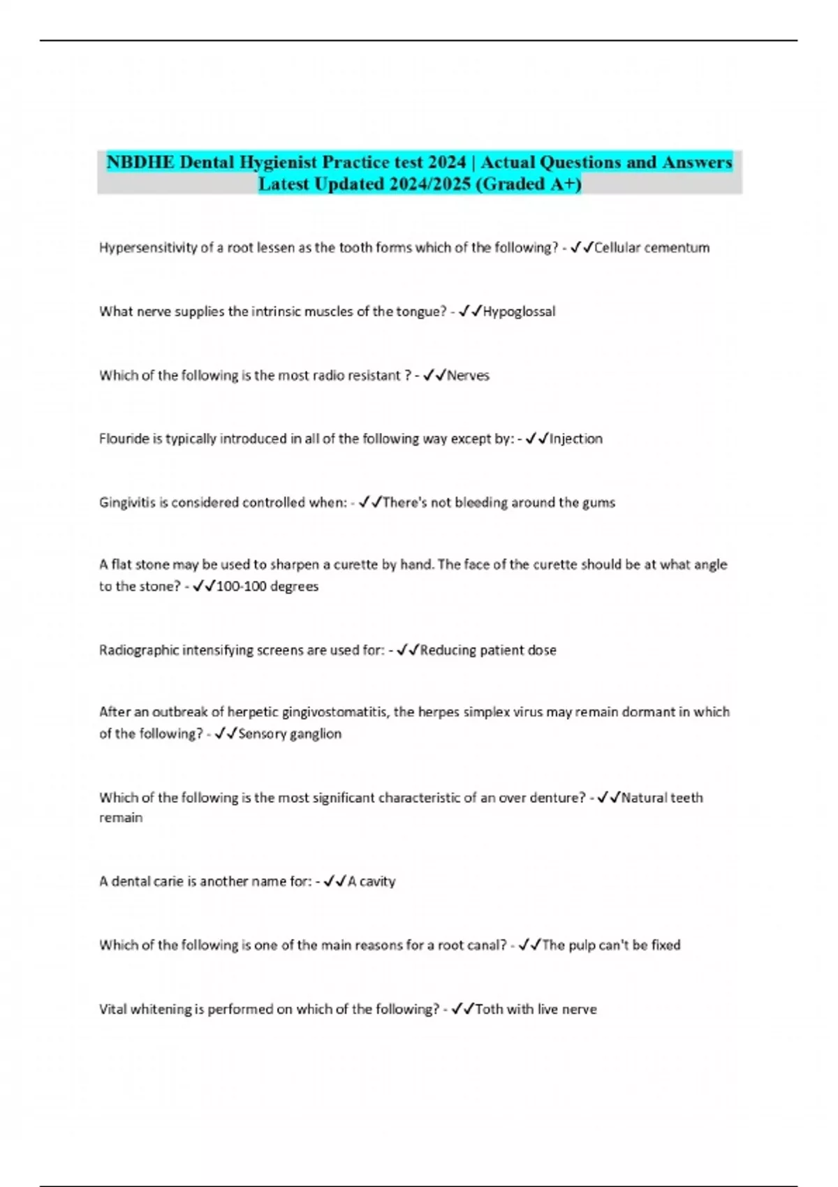 NBDHE Dental Hygienist Practice test 2024 | Actual Questions and Answers